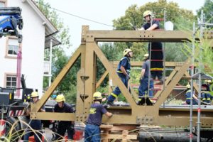 Alles lief nach Plan beim Einrollen der zweiten Behelfsbrücke am Sonntagvormittag. Die Lager waren richtig vorbereitet, die Rollen rollten und auch die Montage im Vorfeld hatte gut geklappt.