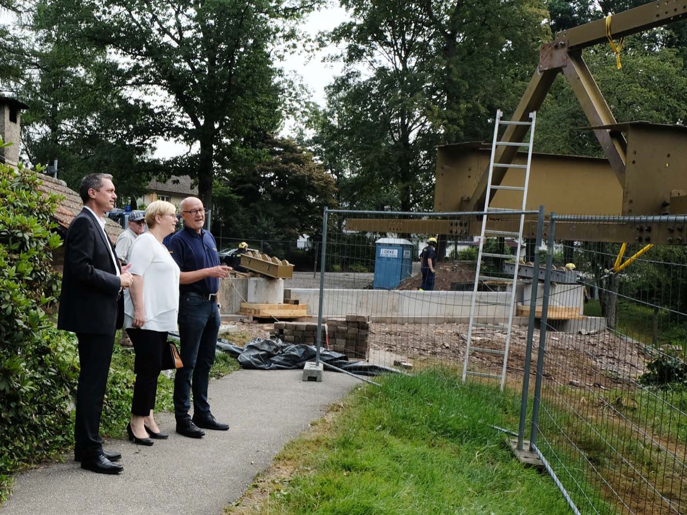 Jetzt, da die Brücke richtig sitzt, ist das Regierungspräsidium wieder am Zug. Es gilt die Zufahrten zu erstellen. Das ist für den Herbst geplant. Wenn im November dann die Rössle-Brücke abgebrochen wird, wird die Kurpark-Umfahrung aktiviert, die dank des ehrenamtlichen Einsatzes der Hilfskräfte vom THW die Überquerung des Harmersbachs möglich macht.