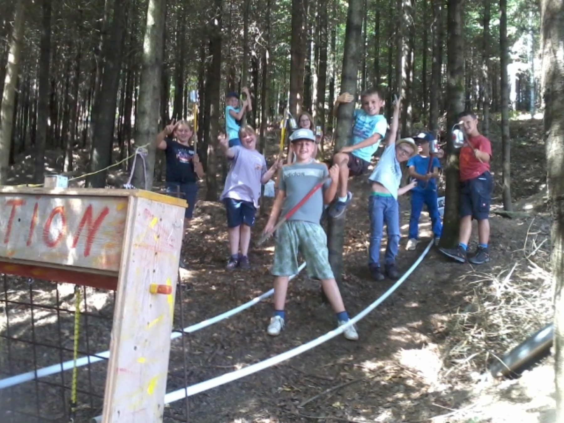 Zuerst gab es zwei Spiele auf dem Bauernhof, bei denen die Kinder ihre Geschicklichkeit und Teamgeist zeigen konnten. Nach einer Erfrischung mit selbstgemachtem Apfelsaft ging es mit dem Programm weiter. An einem Waldrand gelegen waren verschiedene action- und erlebnisreiche Spiele vorbereitet. Die Kinder konnten bei den Spielen ihre Kreativität sowie ihrer Ausdauer freien Lauf lassen, wobei der Spaß und die Freude im Vordergrund standen.