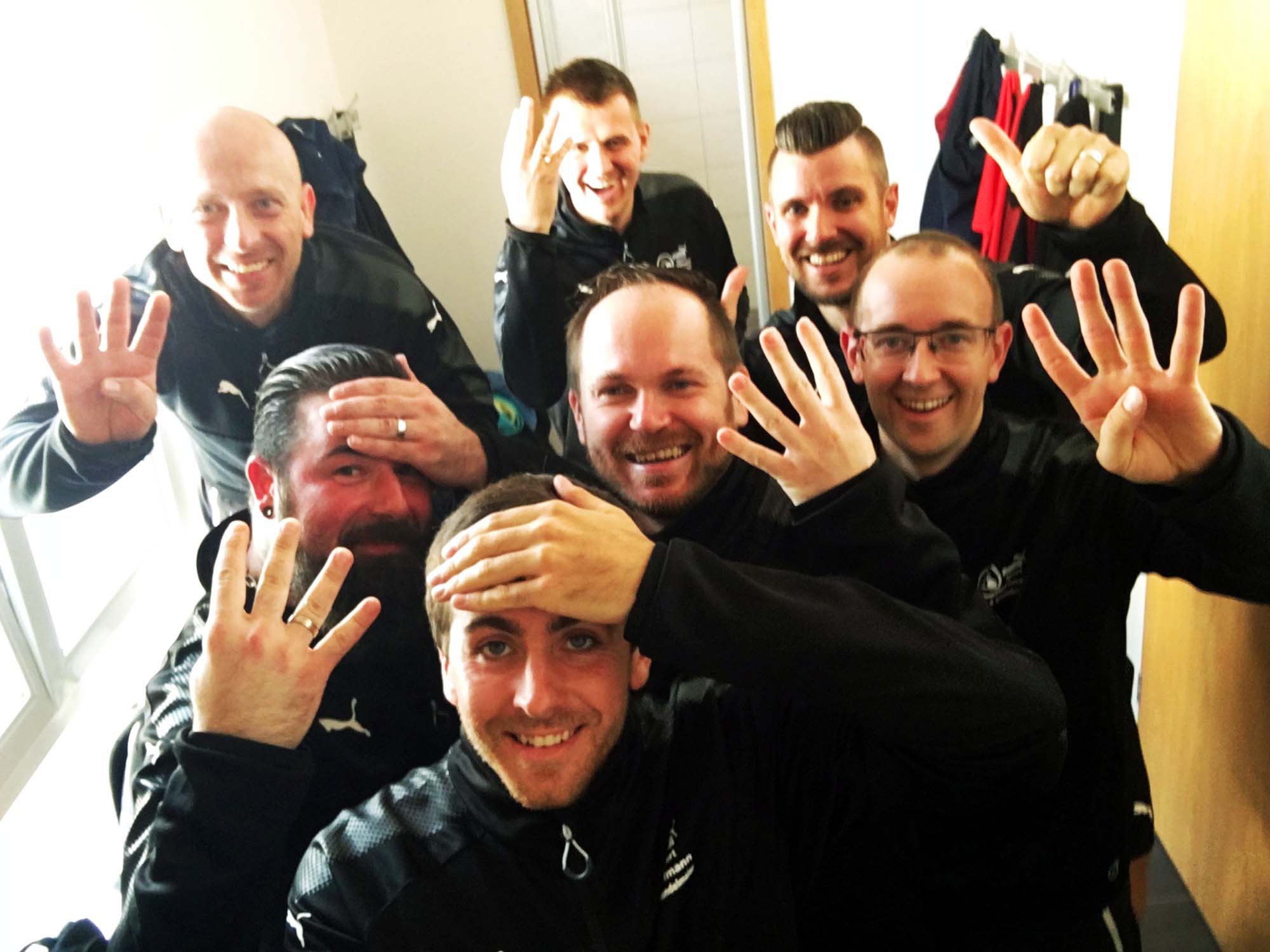 Können es kaum fassen: wegen vier Kegel entführen die Unterharmersbacher zum ersten Mal die Punkte aus Peiting. Foto: Verein