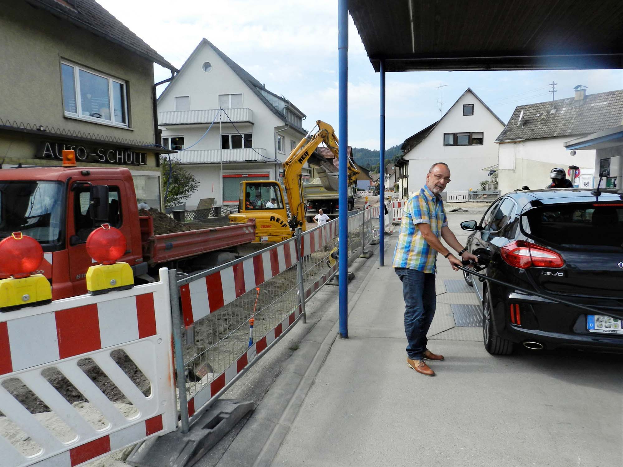 Die Straßenbauarbeiten gehen weiter flott voran. In den neuen Bauabschnitten zwischen »Ochsen« und Rösslebrücke und zwischen der Metzgerei Herrmann und Autohaus Schülli (Bild) läuft es unter Vollsperrung auf Hochtouren. Für die Bewohner zwischen »Ochsen« und Rösslebrücke wurden zum Parken ihrer Autos Parkbuchten in der Straße »Im Buchenfeld« sowie auf dem Rathausplatz eingerichtet. Zum Glück ist die Tankstelle Schülli weiterhin vom Ochsen her erreichbar, Kunden der Metzgerei Herrmann können schon ganz normal von Zell her über die fertige L94 zum Einkaufen fahren.