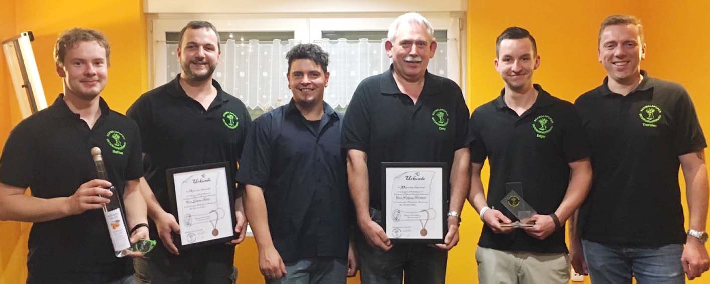 Johannes Müller und Florian Nessler wurden für elf Jahre aktive Mitgliedschaft in der Guggemusik geehrt und erhielten eine Urkunde in Kombination mit einer Flasche Likör. Für 33 Jahre aktive Mitgliedschaft bedankt sich die Vorstandschaft bei Wolfgang Mischnick. Für dieses Jubiläum erhielt er ebenfalls eine Urkunde mit einer Flasche Likör. Außerdem erhielt er ein graviertes Bierglas mit Widmung. Für den besten Tourbesuch 2017/2018 wurde Johannes Heinz mit einem Tour-Pokal geehrt. Den zweiten Platz belegten Mathias Schöner, Johannes Müller und Wolfgang Mischnick. Auf dem dritten Platz landete der erste Vorsitzende Daniel Behrschmidt.