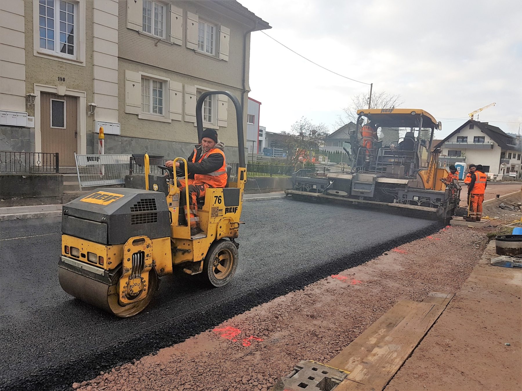 Seit der Kilwi hatte die Firma Reif mit Hochdruck daran gearbeitet, diesen Abschnitt bis zum bereits seit Monaten festgelegten Asphaltiertermin (12. bis 14. Dezember) fertigzustellen. Die große Rotte unter Polier Hermann Seiler arbeitete sogar oft bis in die Nacht hinein und auch am Samstag. Nur mit der großen Anstrengung aller konnte der vorgesehene Termin nun geschafft werden.