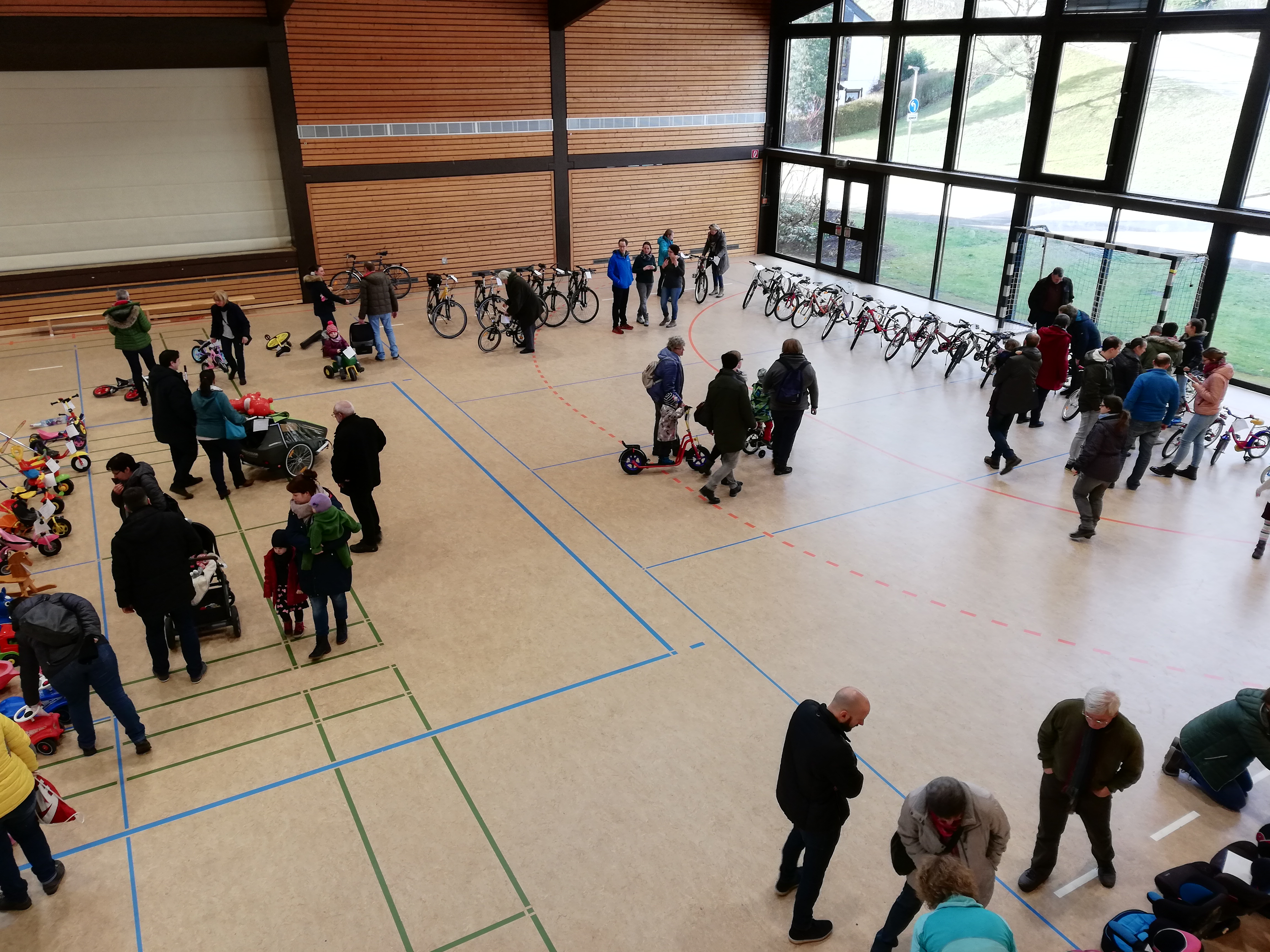 Auch dieses Mal wurden viele verschiedene Fahrzeuge in der Schwarzwald-Halle abgegeben. Viele von den Fahrrädern, Kindersitzen und anderen Fahrzeugen wechselten den Besitzer. So manch ein Besucher hat beim Verlassen der Halle noch am Kuchenbuffet eine Auswahl der verschiedenen Torten mitgenommen. Der Elternbeirat dankt allen, die ihre Fahrzeuge zum Verkauf angeboten haben und den Mamis der Kindergartenkinder, die einen Kuchen gebacken haben.