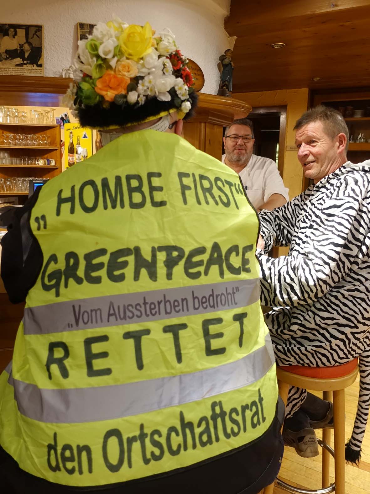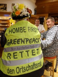 Foto: Hans-Peter WagnerAm Vormittag entmachteten sie gemeinsam mit den Eckwaldhexen Ortsvorsteher Hans-Peter Wagner. Am Abend war der Rathausplatz von den närrischen Zuschauern, den Hexen und der Guggenmusik gut gefüllt, um beim Narrenbaumstellen dabei zu sein. In dieser zweiten Bilderserie zeigen wir weitere Narrengesichter, die die Fasent im Hombe hochleben ließen.