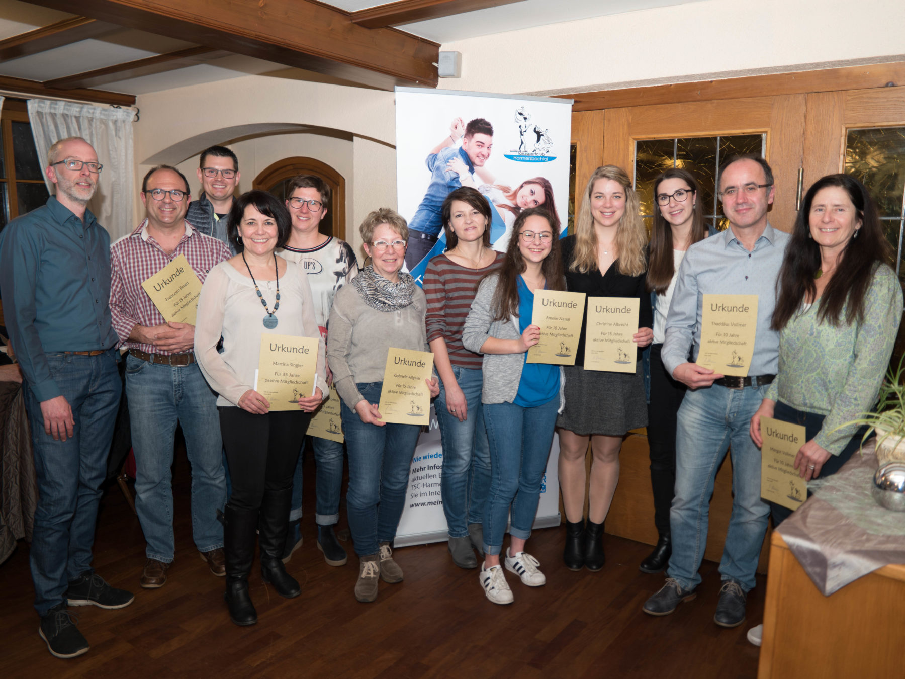 Der 1. Vorsitzende Markus Lehmann begrüßte die Anwesenden und bedankte sich für das Engagement der Mitglieder im vergangenen Jahr und deren Unterstützung beim Plauschturnier, mit dem sich der TSC in seiner ganzen Vielfältigkeit, einem breiten und interessierten Publikum präsentiert. Besonders hervorgehoben wurde, dass mit Katrin Pfundstein und Elias Vogt nach 26 Jahren wieder ein Rock’n’Roll Tanzpaar die deutsche Meisterschaft in der C-Klasse gewonnen hat und dass der TSC im Rahmen des Baden-Württembergischen Rock’n’Roll-Cups alle Klassen gewonnen hat, in denen TSC-Tänzer präsent waren. Hierbei wurde neben den Trainern auch den zahlreichen Sponsoren gedankt, die diesen Erfolg mit möglich gemacht haben.