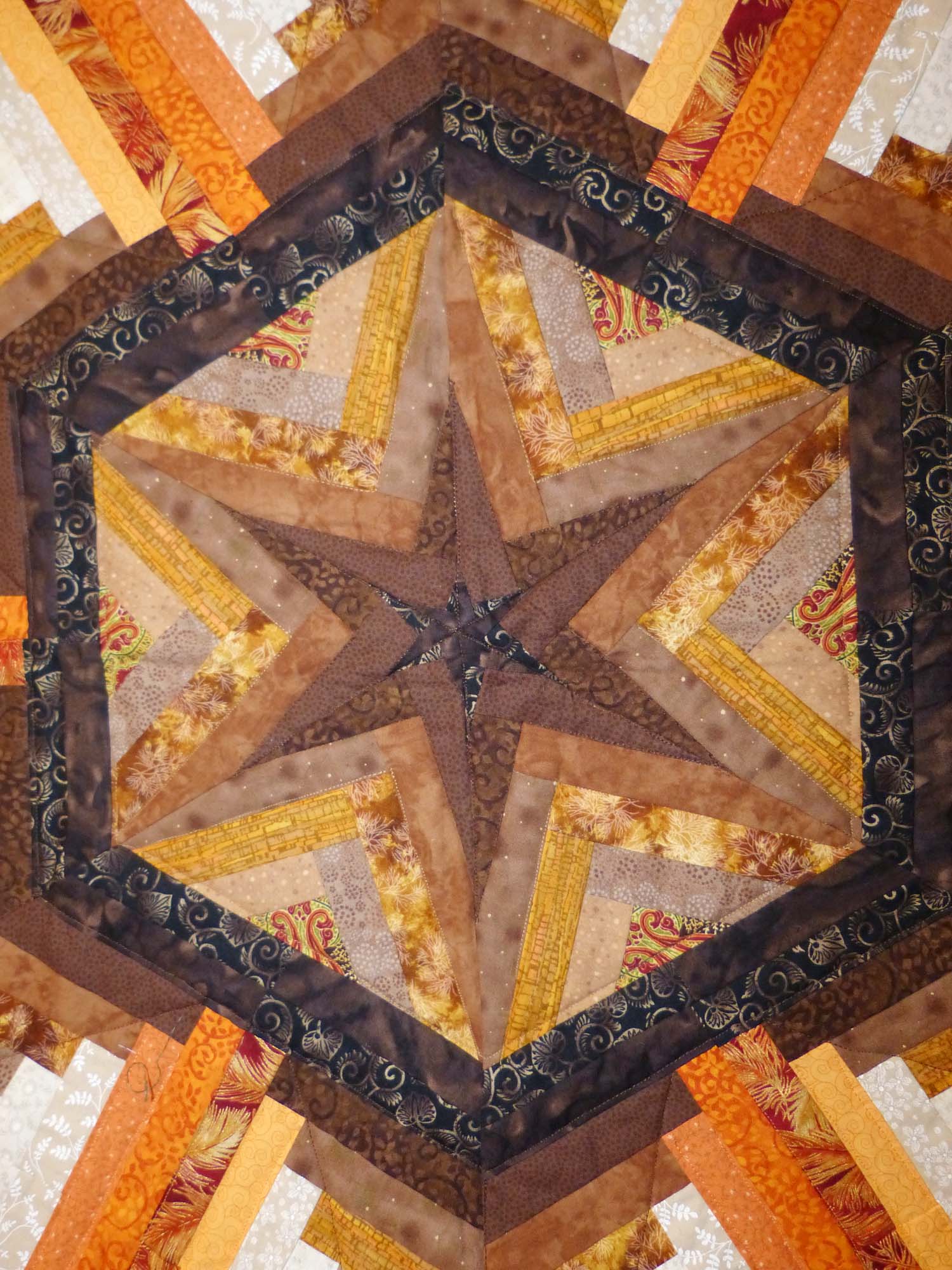 Auch hochgradige Akku­ratesse gehört dazu. »Wenn ich viel Stoff habe, der zusammentrifft, dann verschiebt sich schon mal eine Naht. Aber ansonsten sollte es natürlich akkurat sein«, erklärt die Unterharmersbacherin, die Quilts mit bis zu sage und schreibe 3.000 teils winzigen Stoffteilen herstellt, »wenn ich da bei jedem