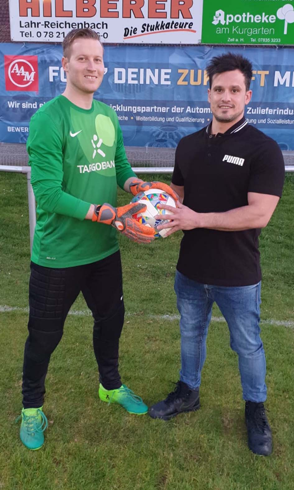Ist mit dieser Ballspende das Fundament für einen FVU-Heimsieg gebaut? Die Firma Schwörer-Bau aus Steinach hat den Spielball für das Heimspiel des FVU am Sonntag, 15 Uhr, gegen Tabellenführer Oberwolfach gespendet.
