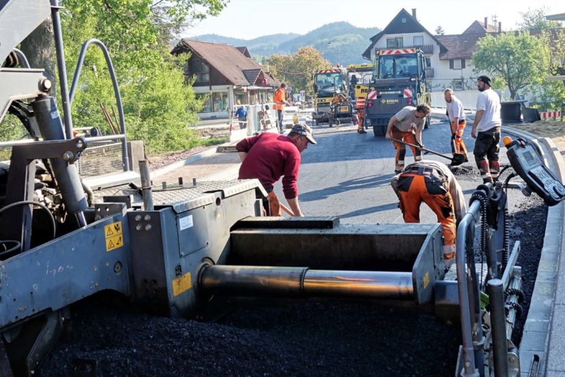 Gestern begann die Firma Reif mit einem großen Aufgebot an Mitarbeitern und Maschinen das Teilstück Ochsen/Ochsenmühle bis hinauf zur Apotheke zu asphaltieren. Das wird bestimmt alle freuen: Schon im Laufe der nächsten Woche kann der Verkehr wieder wie eh und je und über ein Jahr früher als geplant über die Rösslebrücke laufen. Allerdings für eine Woche mit Ampel, weil der Bereich Apotheke ausgebaut und gepflastert werden muss.