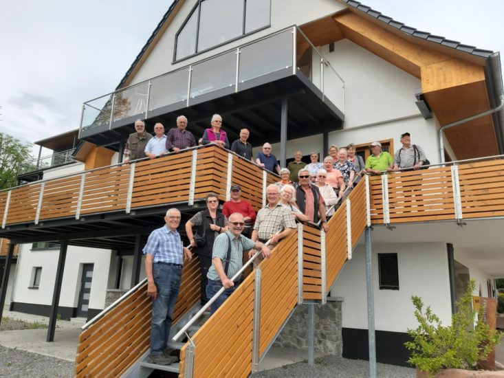 Der zweite Teil der Strecke bestand aus ausgesuchten Waldwegen. Immer wieder wurde die gut gelaunte Gruppe mit herrlichen Aussichten belohnt. Über den Andersbach und dem Hardersberg ging es wieder zurück zu den abgestellten Autos bei der Waldsteinschänke. Danach war die Einkehr angesagt, die auf dem Nil ausgesucht worden war. Nach einem herzlichen Empfang wurden alle mit Speis und Trank bestens versorgt. Danach war es Zeit für ein paar fröhliche Lieder mit Mundharmonikabegleitung. Rasch verging die Zeit, so dass man an den Nachhauseweg denken musste. Beim Auseinandergehen versprach man sich, bei der nächsten Veranstaltung am Donnerstag, 23. Mai wieder dabei zu sein.