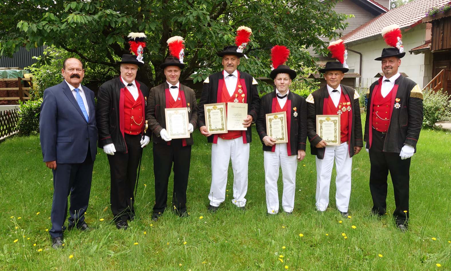 Dieses Jahr wurden drei Mitglieder für 25-jährige und zwei Mitglieder für 50-jährige Treue geehrt. Franz Lehmann wurde zum Ehrenmitglied ernannt.