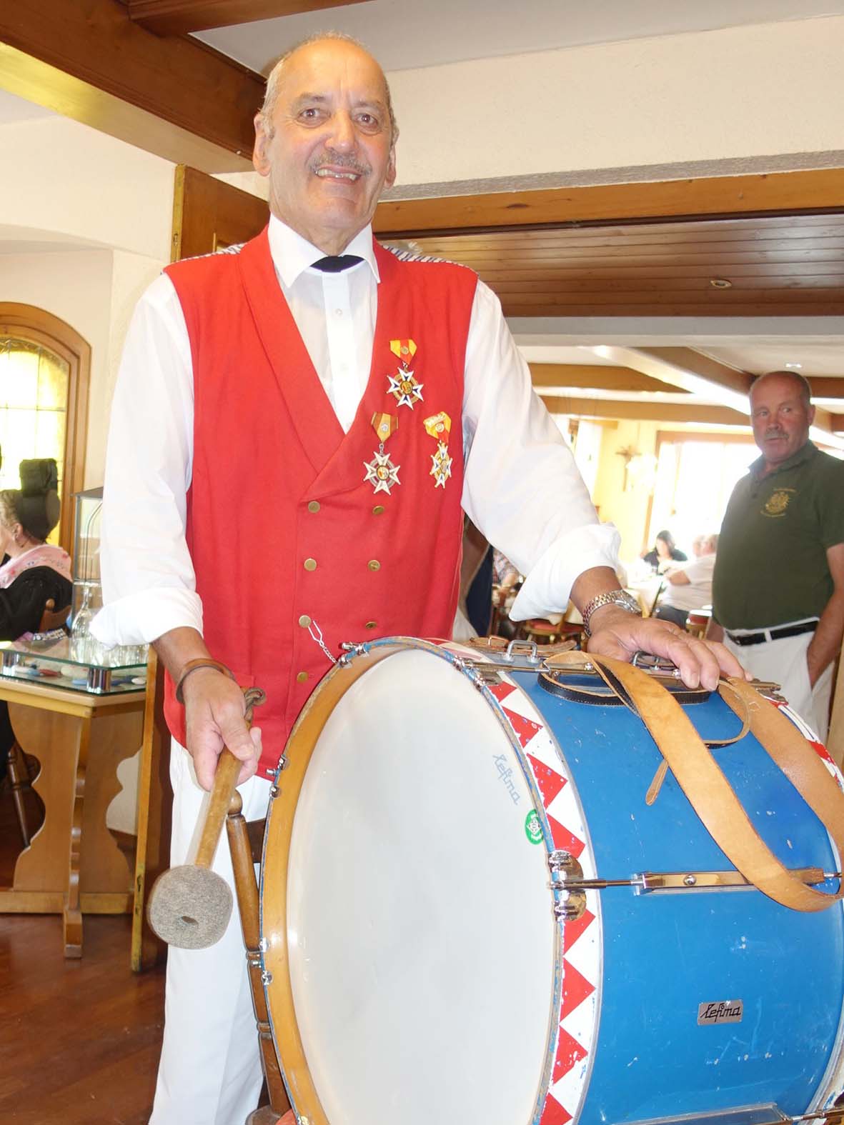 Ebenfalls für 50-jährige Treue zur Bürgerwehr wurde Franz Lehmann geehrt. Er trat 1969 in die Bürgerwehr als Gewehrträger ein. Als 1973 Karl Neumaier gesundheitsbedingt die große Trommel abgab, erklärte sich Franz Lehmann bereit, dieses Amt zu übernehmen. Der damalige Tambourmajor Erwin Spitzmüller brachte ihm dann bei ihm zuhause in der Küche die Kunst des Trommelns bei. Seit 46 Jahren trägt nun Franz Lehmann, im Tal als »Grundsepp« bekannt, bei unzähligen Auftritten in der Heimat aber auch auswärts bis in die Partnergemeinde Tuggen/Schweiz die Trommel. Franz Lehmann schlägt die Trommel mit hohem Können und er trägt sie mit Stolz. Auch er fehlt nie. Hierfür wurde Franz Lehmann nun zum Ehrenmitglied der historischen Bürgerwehr Unterharmersbach ernannt.