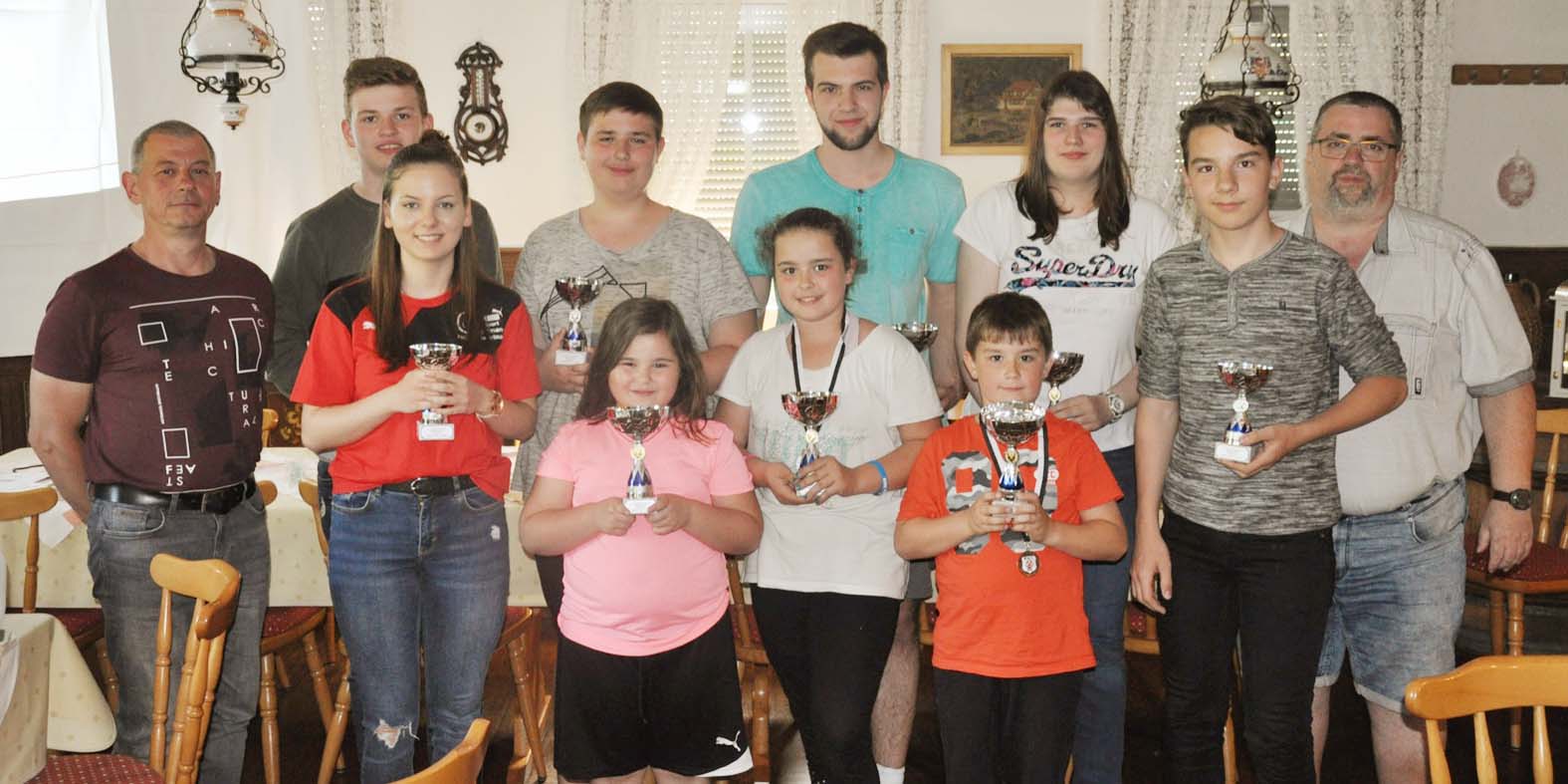 Foto: VereinBei der Jugendversammlung konnte der 1. Jugendwart wieder einen langen Erfolgsbericht vorlegen. Über die verschiedenen Ebenen taten sich die jungen Nachwuchskegler immer wieder hervor und positionierten sich erfolgreich auf den jeweiligen Treppchen. Bei der Bezirksjugendrunde belegte die 1. Jugendmannschaft Platz 1 und die 2. Jugendmannschaft den dritten Rang hinter der SG Wolfach/Oberwolfach. Nach dem ausführlichen Erfolgsbericht, dem Ausblick auf die neue Saison und Organisatorischem zur bevorstehenden Deutschen Jugendmeisterschaft über Pfingsten ging es zur Siegerehrung der Mannschaftsbesten in der Jugendrunde. In der 2. Mannschaft belegte Paul Schondelmaier mit einem Schnitt von 376,89 Kegel den ersten Platz, gefolgt von Matheo Boschert (344,40) und Noah Benz (355,00). In Mannschaft 1 war Fabian Zimmermann (514,50) ganz oben. Es folgten Celina Wacker (442,32) und Franz Josef Wacker (436,00).