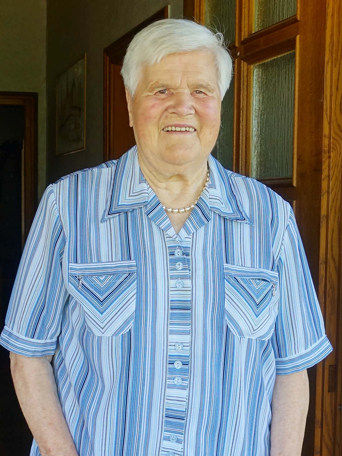 Ihr sympathisches Lächeln und ihre strahlenden dunklen Augen hat sie nicht verloren. Ihren Haushalt besorgt sie selbst, kocht täglich Mittagessen und freut sich, wenn Sohn Werner dann auch da ist und kräftig mit isst. Ansonsten lässt sie es ein bisschen langsamer angehen, schaut gerne die Fallers oder Komödienstadel und vor allem Tag für Tag Punkt 14.00 Uhr im Ersten »Rote Rosen« an. Und natürlich ist sie stolz auf ihre Enkel Lara, Sina und Jana, die mit Sohn Herbert und Schwiegertochter Isolde mit ihr auf dem Hof wohnen.
