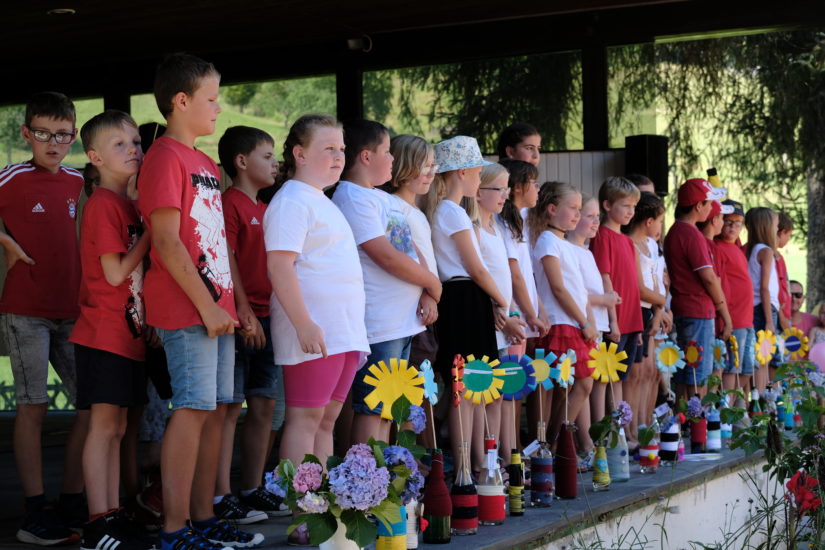 Kein Schulfest ohne Schüleraufführung. Sie war diesmal eher kurz gehalten und stand ebenfalls unter dem Motto »Helfen«. Die dritten und vierten Klassen zauberten unterstützt vom Schulchor verschiedene Lieder auf die Bühne. Seit nach den Pfingstferien hatten sie intensiv für ihren Auftritt geprobt. Zu den lustigen Liedern gesellten sich Sketche und Witze, die die helfenden Berufsgruppen zum Thema hatten. Lacher waren da garantiert. Ob Feuerwehr, Polizei, Arzt oder Lehrer – am Freitagnachmittag wurde jeder auf amüsante Weise aufs Korn genommen. Das kurzweilige Programm passte wunderbar zu dem warmen Sommertag. Nach der Aufführung eroberten die Kinder den Park, um sich aus erster Hand übers Helfen zu informieren.