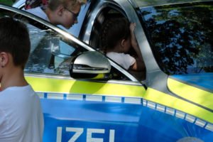 Ganz so aufregend wie beim großen Blaulicht-Tag im Herbst letzten Jahres ging es beim Schulfest nicht zu. Und doch: Die Polizei war da, das THW, das Rote Kreuz mit Krankenwagen und Rettungshundestaffel. Mit lautem Tatütata hatte die Unterharmersbacher Feuerwehr ihren ganz eigenen Auftritt. Es gab ausreichend Gelegenheit, die Fahrzeuge zu besichtigen und sich über die Aufgaben der Blaulicht-Organisationen zu informieren. Wer weiß – vielleicht hat das ein oder andere Grundschulkind Gefallen gefunden und wird auch Feuerwehrmann, Sanitäter oder Polizist. Über mangelndes Interesse konnten sich die »großen« Helfer jedenfalls nicht beschweren. Alle Stationen im kühlen Schatten unter den großen Bäumen waren den ganzen Nachmittag über von Kindertrauben belagert. Von ängstlicher Annäherung war wenig zu spüren. Vielmehr wurden alle Knöpfe ausprobiert und die gesamte Ausrüstung neugierig durchforstet.