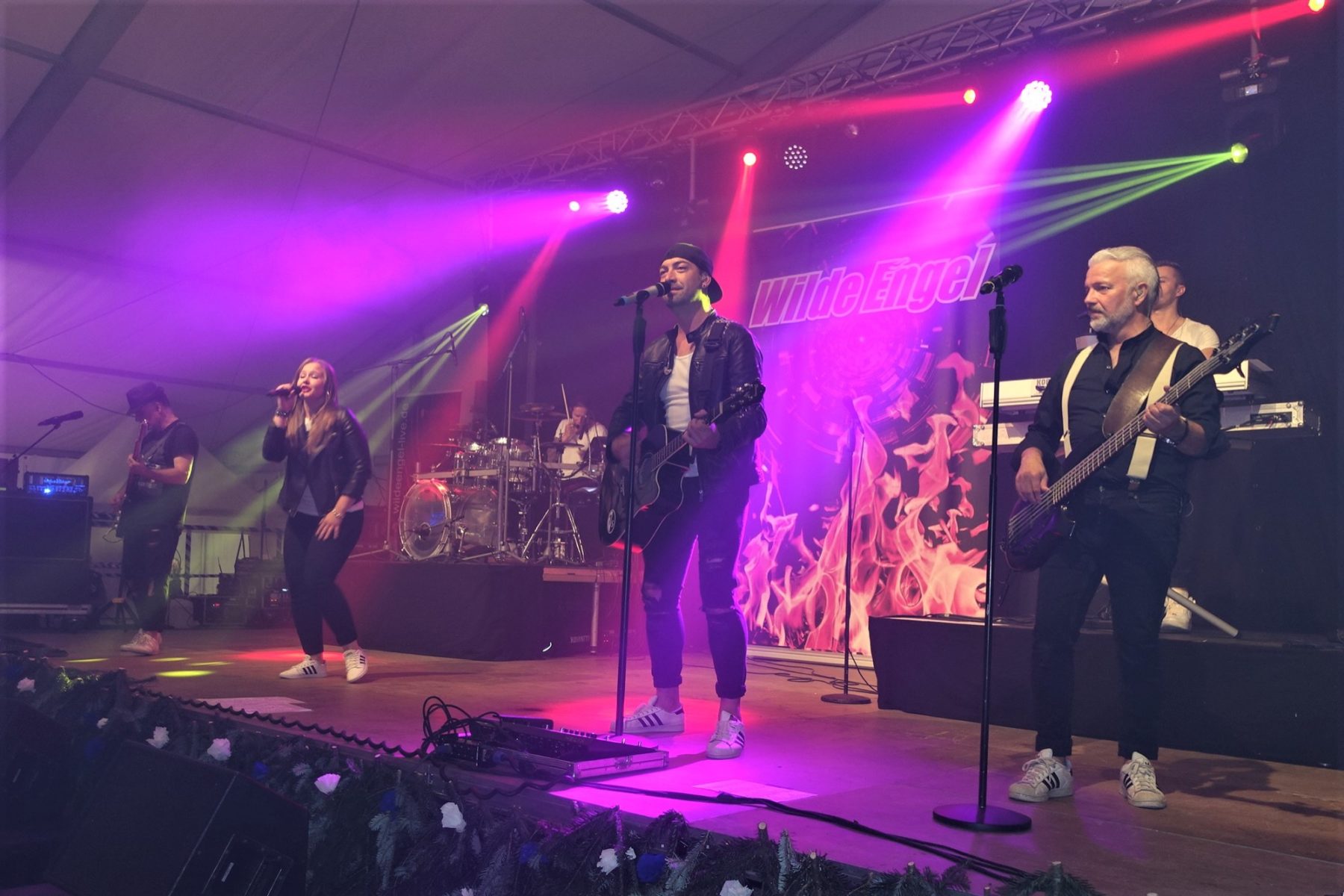Danach legte Deutschlands-Partyband Nr. 1, »die Wilden Engel« aus Titisee gleich furios los. Schon nach den ersten Takten glich das Festzelt einem Hexenkessel. Die Besucher in dem bis auf den letzten Platz gefüllten Festzelt feierten auf den Tischen, auf den Bänken, in den Gängen begeistert mit. Das Festzelt bebte und nicht nur das Bier, sondern auch die Stimmung waren hervorragend. Mit ihrem vierstündigen Auftritt lieferten die »Wilden Engel« eine Show vom Feinsten ab. Gäste aus der Schweiz und aus dem Elsaß hatten unermüdlich zusätzlich die Stimmung angeheizt.