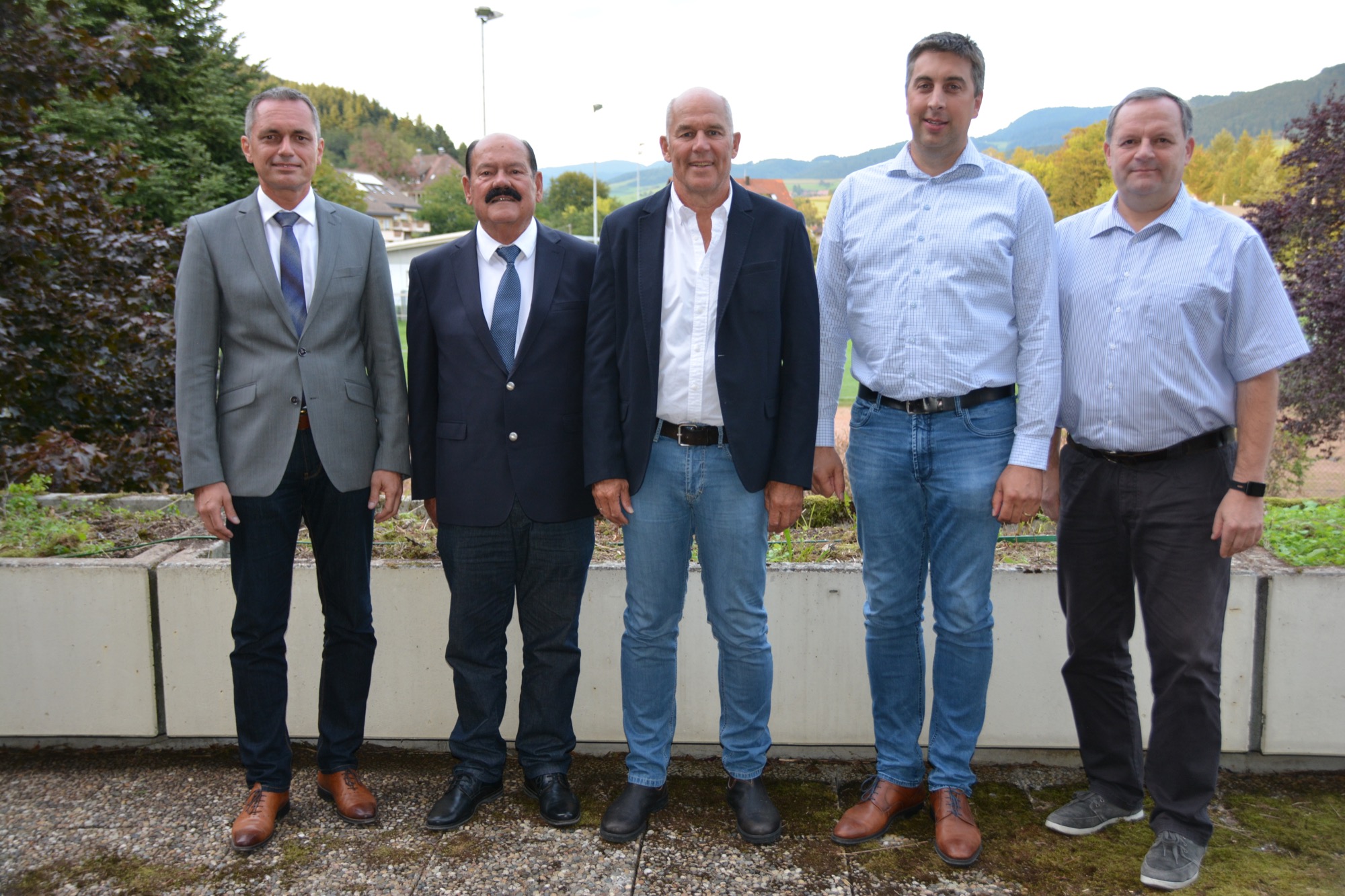 Die personellen Weiche im Ortschaftsrat Unterharmersbach sind gestellt: Ludwig Schütze (Mitte) wurde gestern Abend zum neuen Ortsvorsteher gewählt. Seine beiden Stellvertreter sind Jürgen Isenmann (2. von rechts) und Ewald Glatz (rechts). Zur Wahl gratulierten (von links) Bürgermeister Günter Pfundstein und der scheidende Ortsvorsteher Hans-Peter Wagner. Foto: Hanspeter Schwendemann