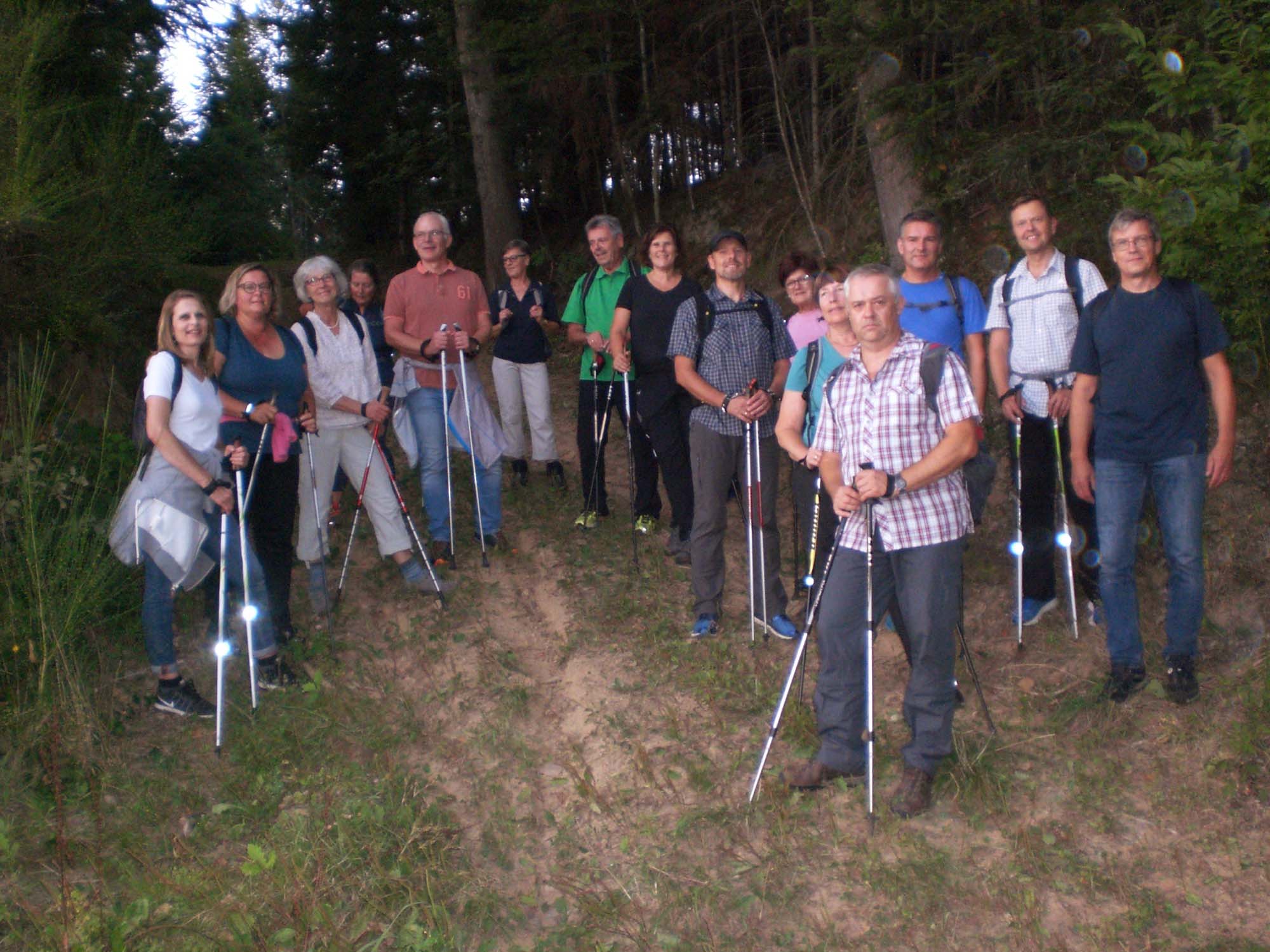 40 Teilnehmer hatten sich bei Gabi Schneider von der Tourist Info Zell angemeldet und gegen 19 Uhr am Parkplatz Schwarzer Adler eingefunden. Die Wandergruppe mit Führer Hubert Temme setzte sich über das Jägereckle zum Höllhaken in Bewegung. Der dortige Schnapsbrunnen bot einen willkommenen Anlass zur Rast. Weiter ging es denn Hullert hinab zum Oberburehof.