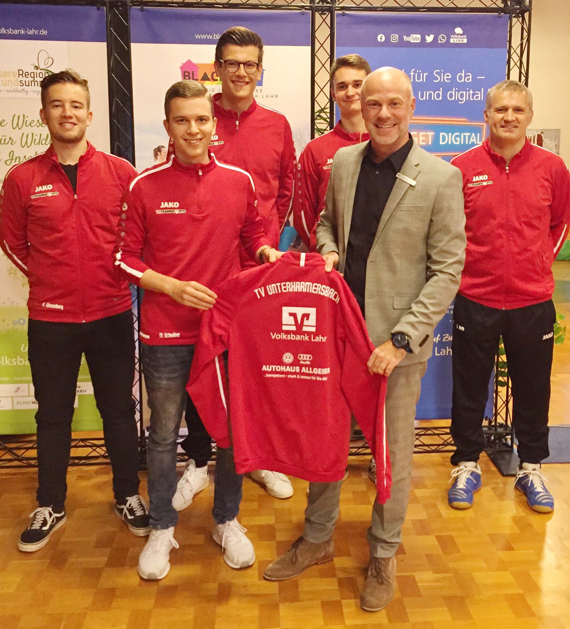 Die Herren-Tischtennismannschaft des Turnvereins Unterharmersbach kann sich über 15 neue »Outfits« freuen. Die Volksbank Lahr unterstützte die Herren C-Klasse bei der Anschaffung der hochwertigen Trainingsanzüge.