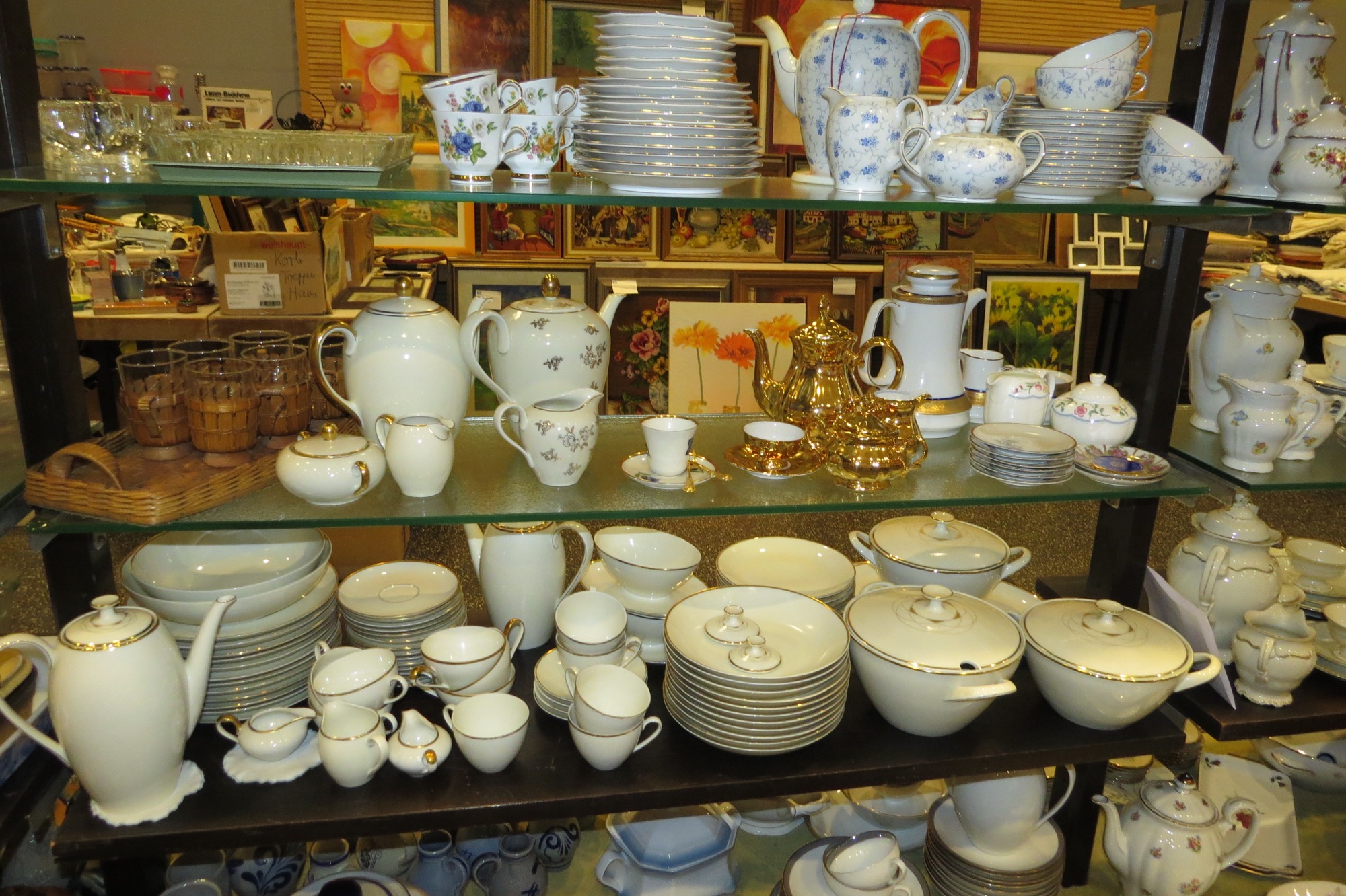Foto: Gisela AlbrechtDas Angebot an Porzellan lässt keine Wünsche offen: Komplette Tafelservice und schöne Einzelstücke sind dekorativ aufgebaut. In der Elektronikabteilung gibt es neuwertige Kaffeemaschinen, eine Stereoanlage, Schallplattenspieler, Elektrogrill und Zimmerbrunnen.