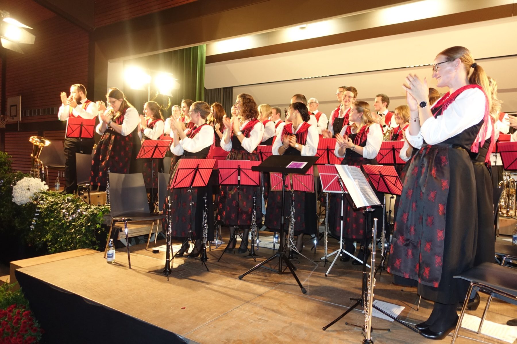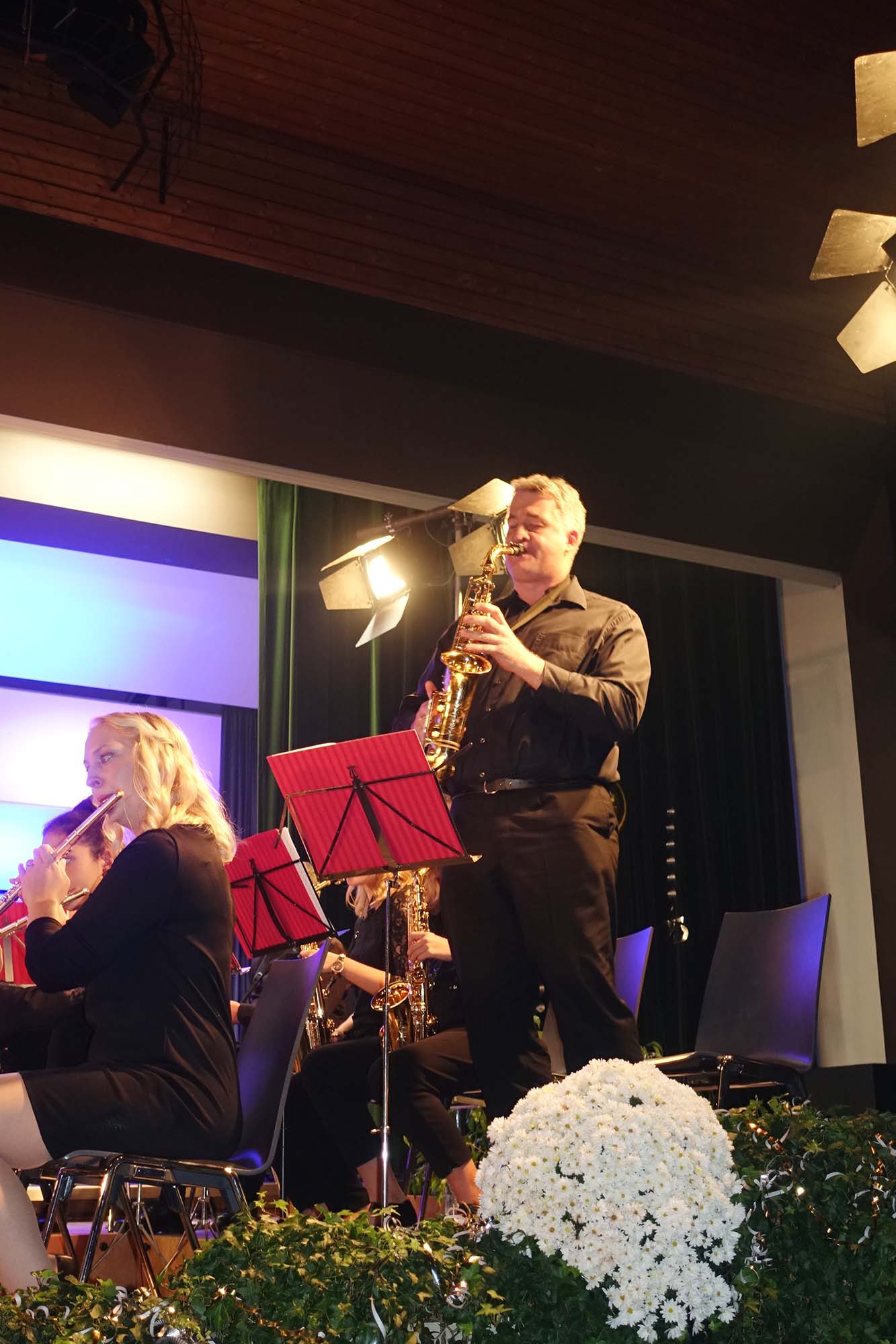 Foto: Hans-Peter WagnerMan spürte es: Stefan Polap hatte an vielen Abenden mit seinen Musikerinnen und Musikern intensiv geprobt, um den besonders zahlreichen heiklen und schwierigen Stellen der Konzertstücke Feinschliff zu geben. Es erstaunte wieder, mit welcher Präzision, gepaart mit scheinbarer, weil »erprobter« Leichtigkeit das Orchester Anspruchvollstes meisterte. Stimmung und Intonation lagen auf äußerst hohen Niveau. Und das schönste Lob hatte der Vorsitzende Christian Vollmer parat: »Trotz der vielen, vielen manchmal harten Proben hat es uns immer noch Spaß gemacht.«