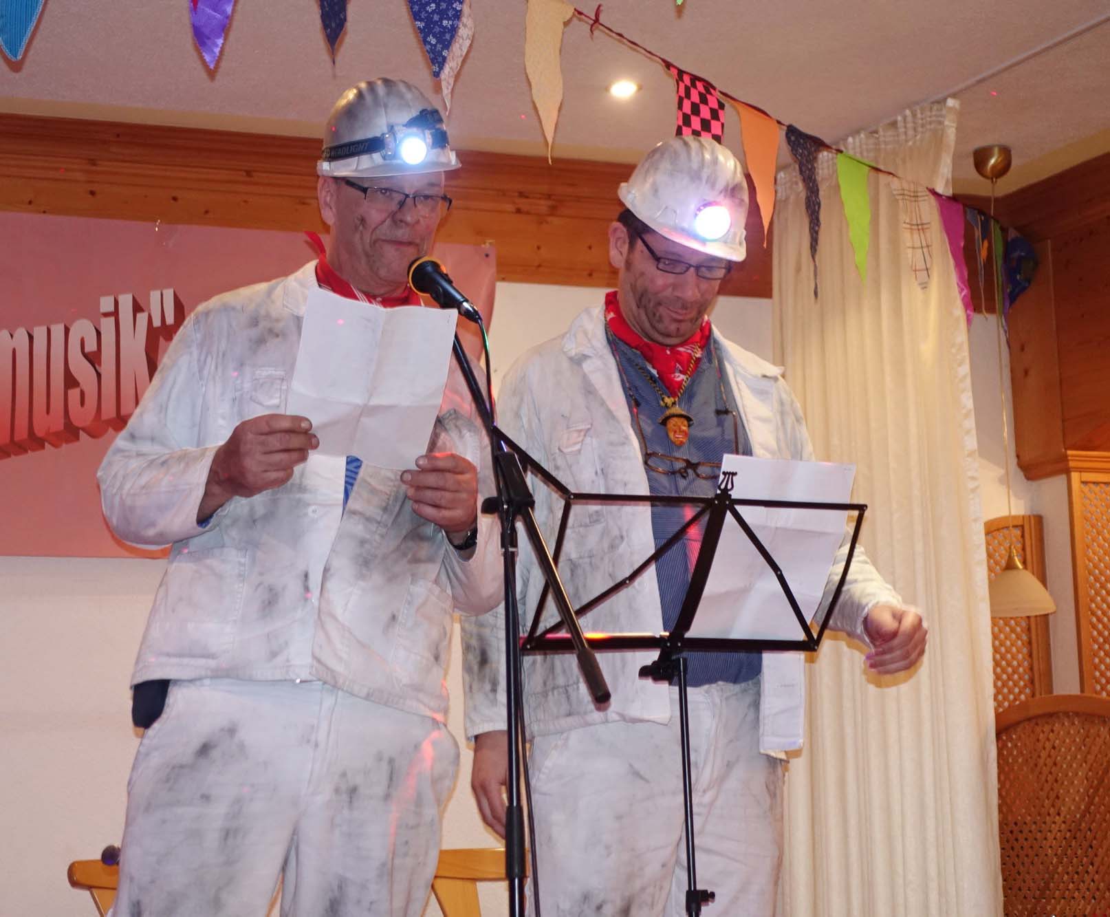 Die Schnitzer des Jahres verrieten nun in der traditionellen Schnitzelbank als älteres vertrautes Ehepaar Friedel Friedmann und Monika Lehmann. Da war zu erfahren, dass Saumusiker Fabian Kornmeier ein exzellenter Hausmann ist. Er bügelt hervorragend und wenn es mal sein muss, sogar die schmutzige Wäsche. Dass »HPW Ex-Ortsvorsteher« bei seinem gemeinsamen Urlaub in St. Tropez drei Tage im falschen Ferienhäuschen wohnte, weil der Vermieter ihm zwar erklärt hatte, dass er den Schlüssel unter den Eingangsvorleger deponiert, aber nicht, dass dies andere Vermieter auch tun. Erst ein Bildvergleich schaffte Klarheit und die richtige Wohnung.