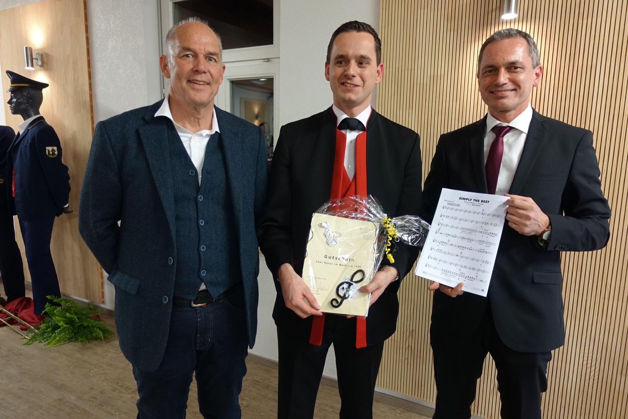Abschließend verteilte Bürgermeister Pfundstein zusammen mit Ortsvorsteher Ludwig Schütze an die Musik- und Trachtenkapelle gute Noten. Nämlich Noten des Welthits »Simply the Best« von Tina Turner und einen weiteren Gutschein, mit dem die Kapelle sich selbst einen Notensatz heraussuchen darf.