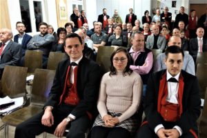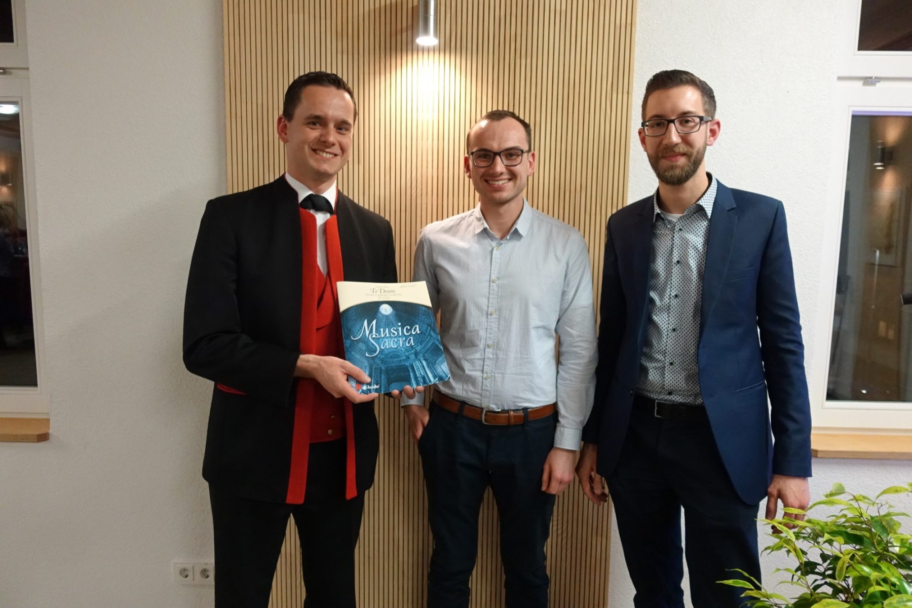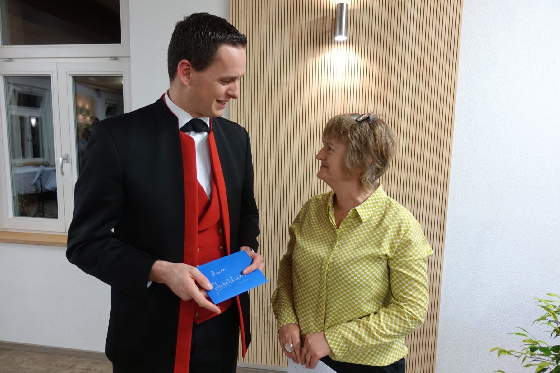 Hohe Gäste, Bürgermeister Pfundstein, Ortsvorsteher Schütze, Stadt- und Ortschaftsräte, vom Kloster Bruder Berthold und Bruder Markus, Blasmusik-Verbandspräsident Armin Klausmann, aktive und passive Musiker, Ehrenmitglieder, sie alle wurden mit einem Gläschen Sekt begrüßt. Für die musikalische Umrahmung sorgte Stefan Polap mit seinen Musikanten.