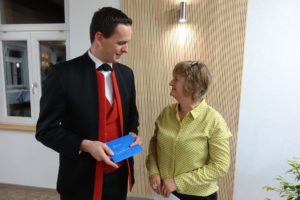 Für die örtlichen Vereine gratulierte Elvira Schilli. Sie dankte der Musik- und Trachtenkapelle mit einem Geldgeschenk, weil sie immer bereit sei, die örtliche Jubiläums-Vereinsfeste und besondere Anlässe mit musikalischen Beiträgen zu umrahmen. Für die Nachbarkapellen gratulierten Sebastian Grillich (Stadtkapelle Zell am Harmersbach) und Florian Berger (Musikkapelle Unterentersbach). Auch sie übergaben namens der beiden Kapellen einen Notensatz.