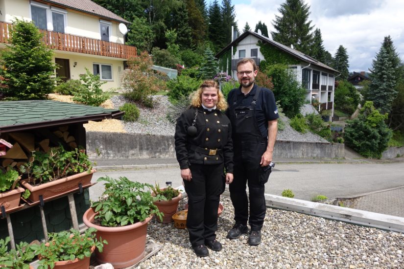 Bei der Berufsfindung wurde Evelyne Pfundstein tatkräftig von Rafael Hansmann, dem Schwager ihres Bruders, unterstützt. Ein erstes Praktikum bei Schornsteinfegermeister Andreas Wurz in Unterharmersbach bestärkte sie in ihrem Berufswunsch. Das zweite einwöchige Praktikum im Juli letzten Jahres endete mit der Bewerbung als Auszubildende. Andreas Wurz, für Oberharmersbach, Unterharmersbach, Nordrach, und für einen Teil von Zell a. H. zuständig, sagte mit Freude zu, denn schon seit Jahren bildet er erfolgreich Lehrlinge in seinem Betrieb aus. Und dass Evelyne Pfundstein schon seit zwei Jahren aktives Mitglied bei der Feuerwehr Oberharmersbach ihren Mann stand, war für ihn ein weiterer Pluspunkt.