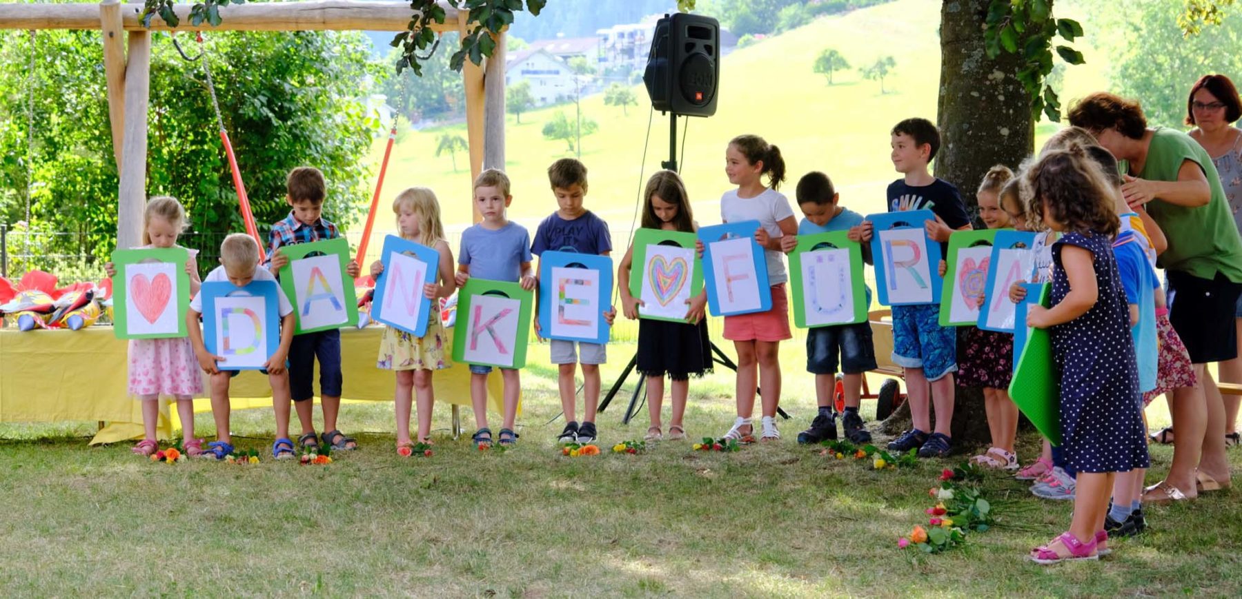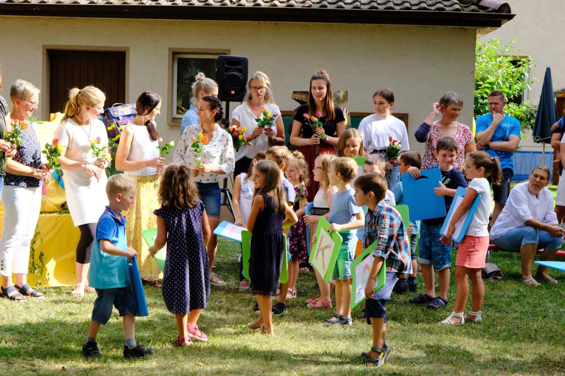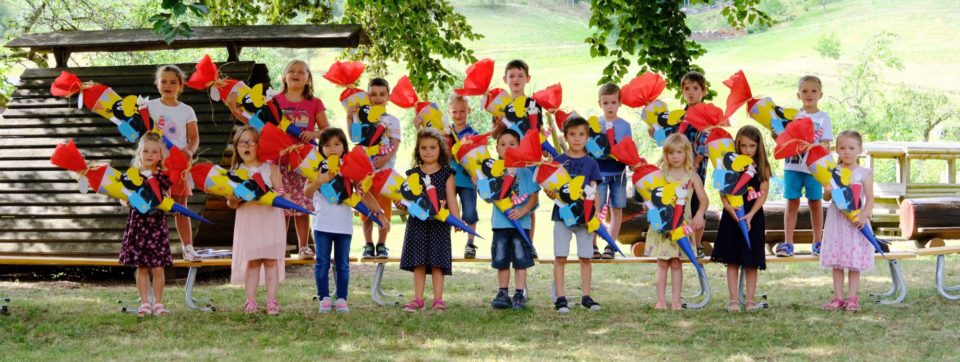 Gestern war der große Tag für die »Großen« im Kindergarten Kleine Wolke da: Die 17 Schulanfänger wurden mit einem kleinen Fest verabschiedet. Man traf sich in weitem Rund im Außenbereich. So konnten auch die Eltern mitfeiern und es durften alle gemeinsam einen wichtigen Lebensabschnitt abschließen. Natürlich wurden auch die Schultüten überreicht.