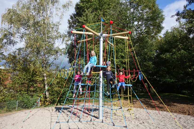 Für Einheimische wie für Gäste gibt eine Tafel mit einem Piktogramm wichtige Hinweise, dass Hunde daheim bleiben müssen, Rauchen verboten ist ebenso wie Radfahren und dass ein Helm nur beim Radfahren sinnvoll ist auf den Spielgeräten hingegen unbedingt abgenommen werden muss. Und weil jetzt Coronazeiten sind, werden die Kleinen mit weiteren Hinweistafeln darauf hingewiesen, Abstand zu halten. Aber die Vorschriften kennen die Kleinen ja inzwischen besser als die Großen.