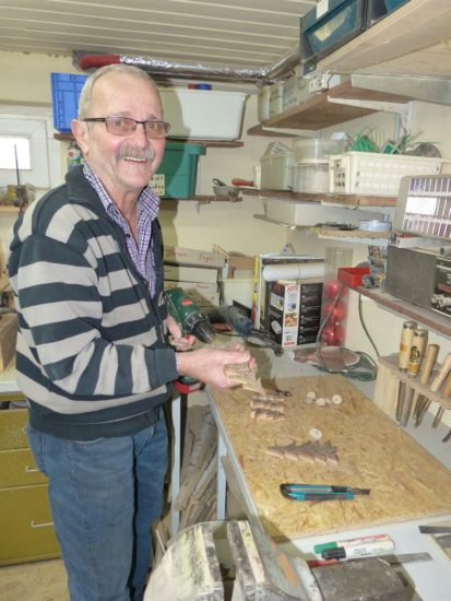 Däumchendrehen kommt für Franz Hoferer also nicht in Frage. Wo denke man hin! Ist er nicht ehrenamtlich unterwegs, dann sieht man ihn womöglich beim Hochsee-Angeln. Vor allem aber ist er dann in seiner Kellerwerkstatt zu finden, wo er mit Schnitzwerkzeug und Decoupiersäge aus Holz weihnachtliche Deko-Elemente kreiert oder Zeller Fasendmasken.