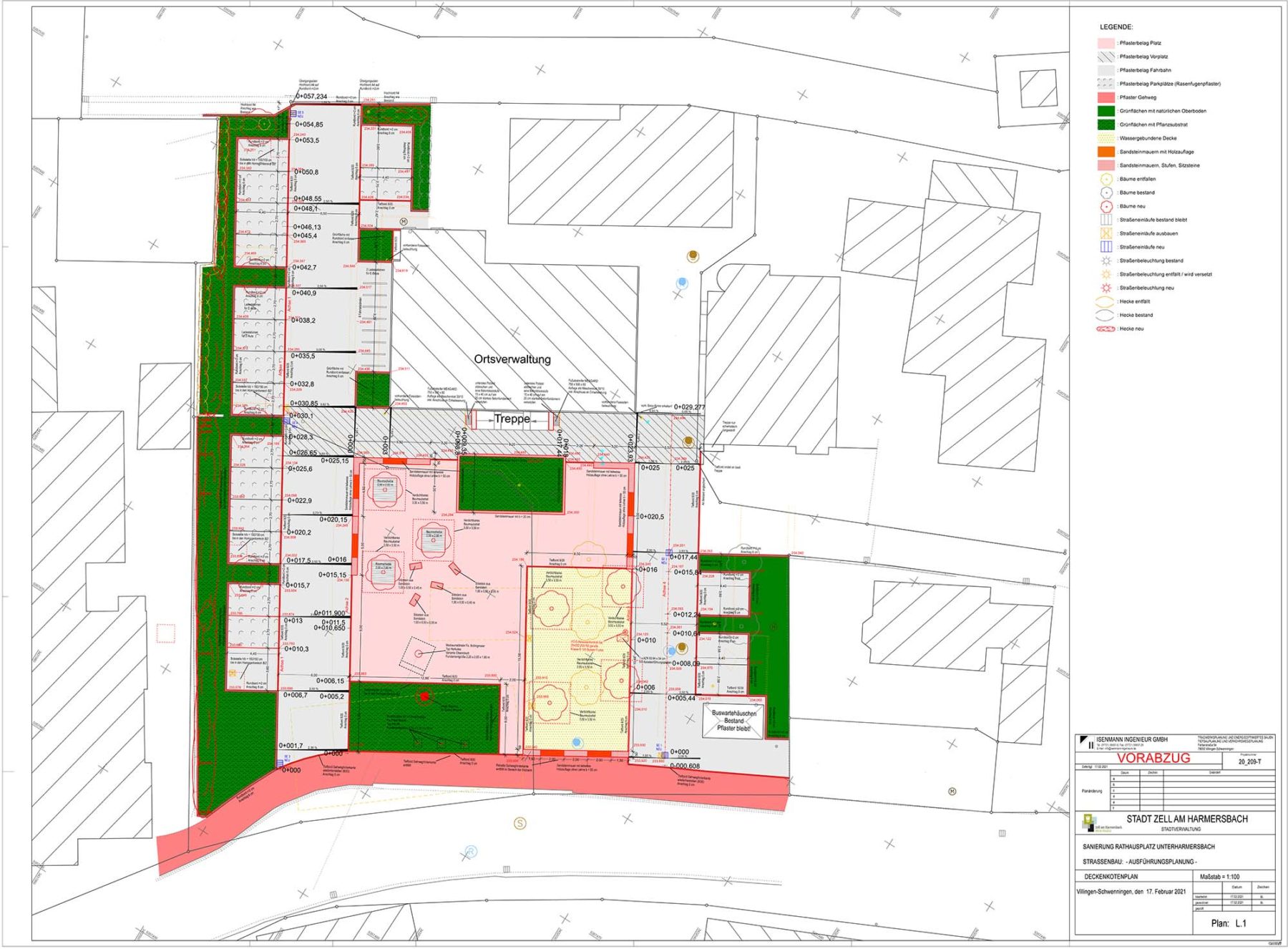 Die Unterharmersbacher dürfen sich freuen. Jetzt wird dem Neubau der L94 die Krone aufgesetzt. Aus der trostlosen Wüste derzeit vor dem Rathaus wird jetzt ein echtes Schmuckstück, ein Dorfplatz für Groß und Klein, ein Treffpunkt für Einheimische und Gäste, wo man sich einfach wohlfühlt. Ein bisschen muss man sich aber gedulden. Nachdem der Gemeinderat in seiner letzten Sitzung »grünes Licht« gegeben hat, können nun die Ausschreibungen laufen. Im Juni ist dann Baubeginn und im Oktober mit einem zünftigen Fest Einweihung.
