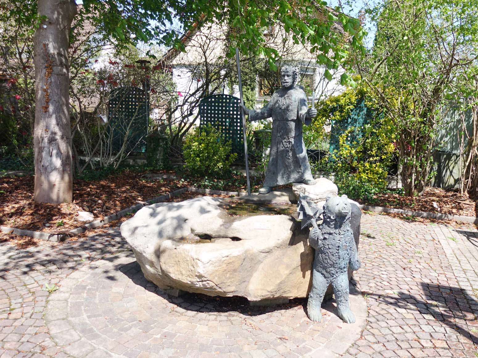 Der Brunnen mit dem heiligen Gallus und dem Bär mit der Tanne wurde von Künstler Walter Haaf geschaffen. Der Standort des Brunnens wird auf dem neuen Rathausplatz in die Mitte verlegt. Foto: Hans-Peter Wagner