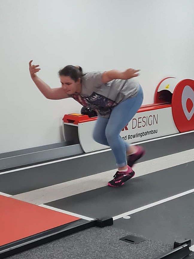 Tag um Tag schritt der Einbau fort: Die Nivellierung des Unterbaus und eine stabile Lattenunterkonstruktion als Fundament für eine ebene Anlauf- und Kugellauffläche sind für eine neue Anlage elementar. Im Kegelstellraum wurden die vorhandenen Kegelstellautomaten montiert. Neue Schlagwände und Kugelheber waren notwendig. Die neue Blendwand, welche den Kegelstellraum zur Kegelbahn abgrenzt und für die Aufhängung der Anzeigen genutzt wird, wurde vor Ort noch einmal angepasst, durch doppelt so starke Holzstützen wie normal verstärkt. Grund dafür war, dass anstelle der Standard 55 Zoll Monitore nun zwei 65 Zoll Monitore je Bahn die Spieler und Zuschauer übersichtlich über den Spielstand informieren.