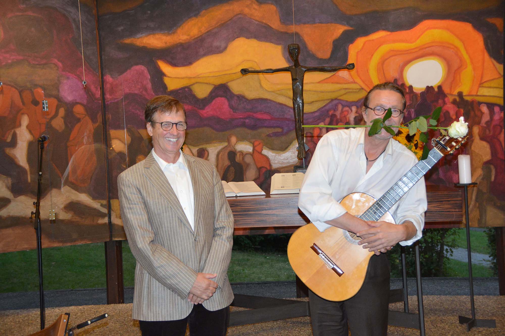 Langenkämper spielte die Melodie auf einer Siku (ein der Panflöte verwandtes Instrument) und begleitete auf der Gitarre. Das Akkordspiel und die effektvollen Läufe auf den tiefen Saiten wirkten zusammen mit den Flötenklängen ausnehmend kommunikativ. Beim Publikum in der Kirche kam die »Collage« dementsprechend gut an, wie der reiche Beifall bestätigte.