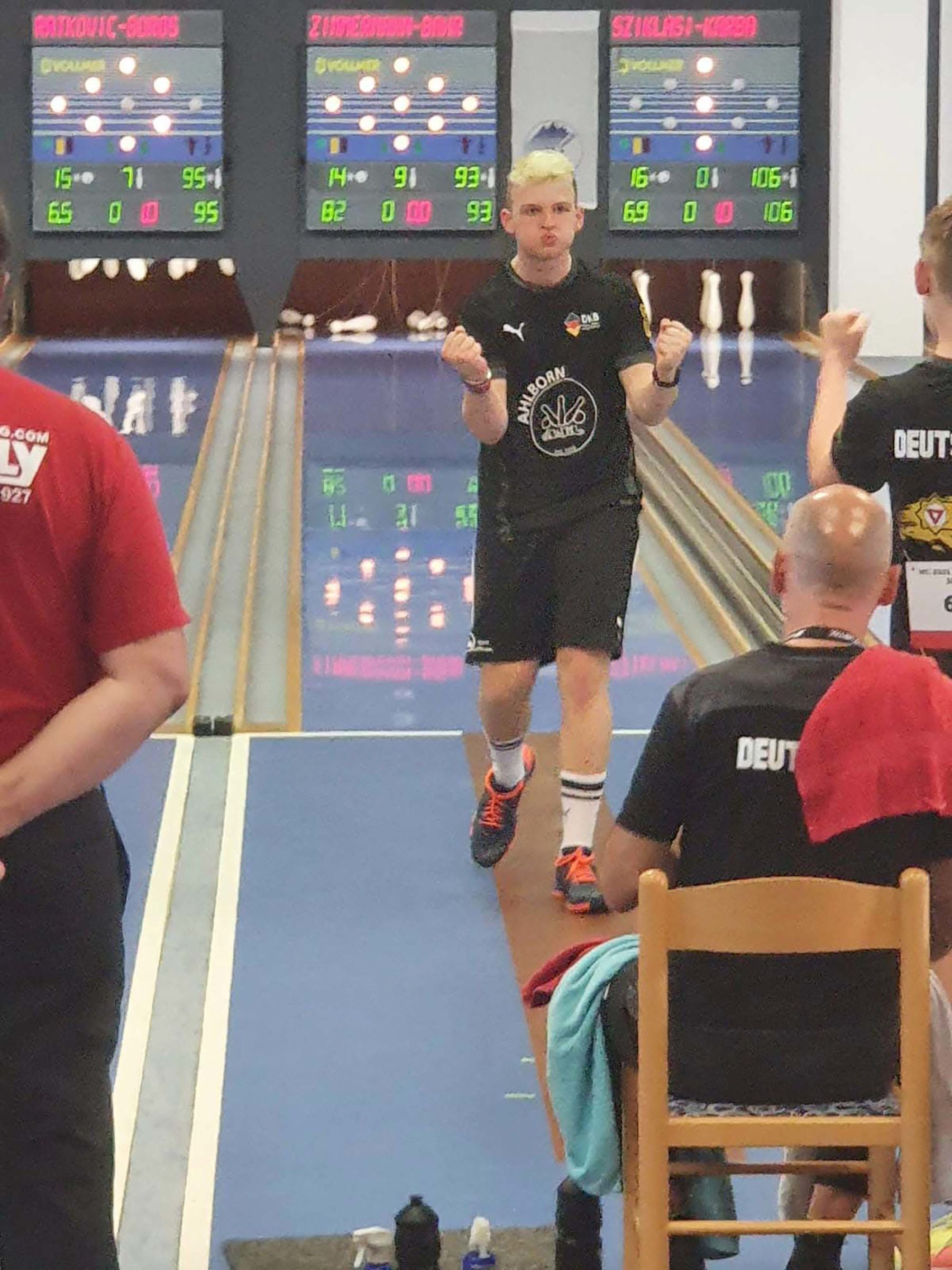 Auch die U18-Jungs schafften es nicht aufs Treppchen. Doch dort war es dramatischer. Fabian Zimmermann stieg mit 563 Kegel solide für das deutsche Team ein. Danach verlief es beim Debüt des zweiten Südbadischen U18-Spielers Jonas Bähr nicht wie erhofft. Zusammen mit Jonas Schön kamen sie auf 536 Kegel. Die Verfolgung nahm dann Raven Michel (578 Kegel) auf. Der Abstand zu Edelmetall war noch ordentlich, ehe Schlussspieler Alex Karl mit 592 Kegel die Aufholjagd fortsetzte. Am Ende sollte es der vierte Platz werden. Mit 2.279 Kegel fehlten auf den Drittplatzierten Serbien (2.284) gerade mal fünf Kegel. Weltmeister wurde Slowenien (2.329 Kegel) vor Ungarn (2.299 Kegel).