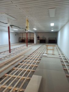 Foto: VereinAm 5. Juni war es endlich soweit. Die komplett umgebaute Kegelbahn im Grünen Hof war fertig gestellt, alle Kegel waren angeseilt, die letzten Platten gelegt und das letzte Stück Teppich verlegt. Offene Kabel gab es keine mehr… nun gut, fast keine. Aber die Technik wurde in der abschließenden Woche erfolgreich in Betrieb genommen. Die letzten Tests waren absolviert und man konnte die ersten Kugeln über den jungfräulichen Belag rollen lassen. Auch wurden ein großer Fitness- bzw. Aufwärmraum und eine zweite Umkleide mit Dusche für die Heimmannschaften geschaffen.