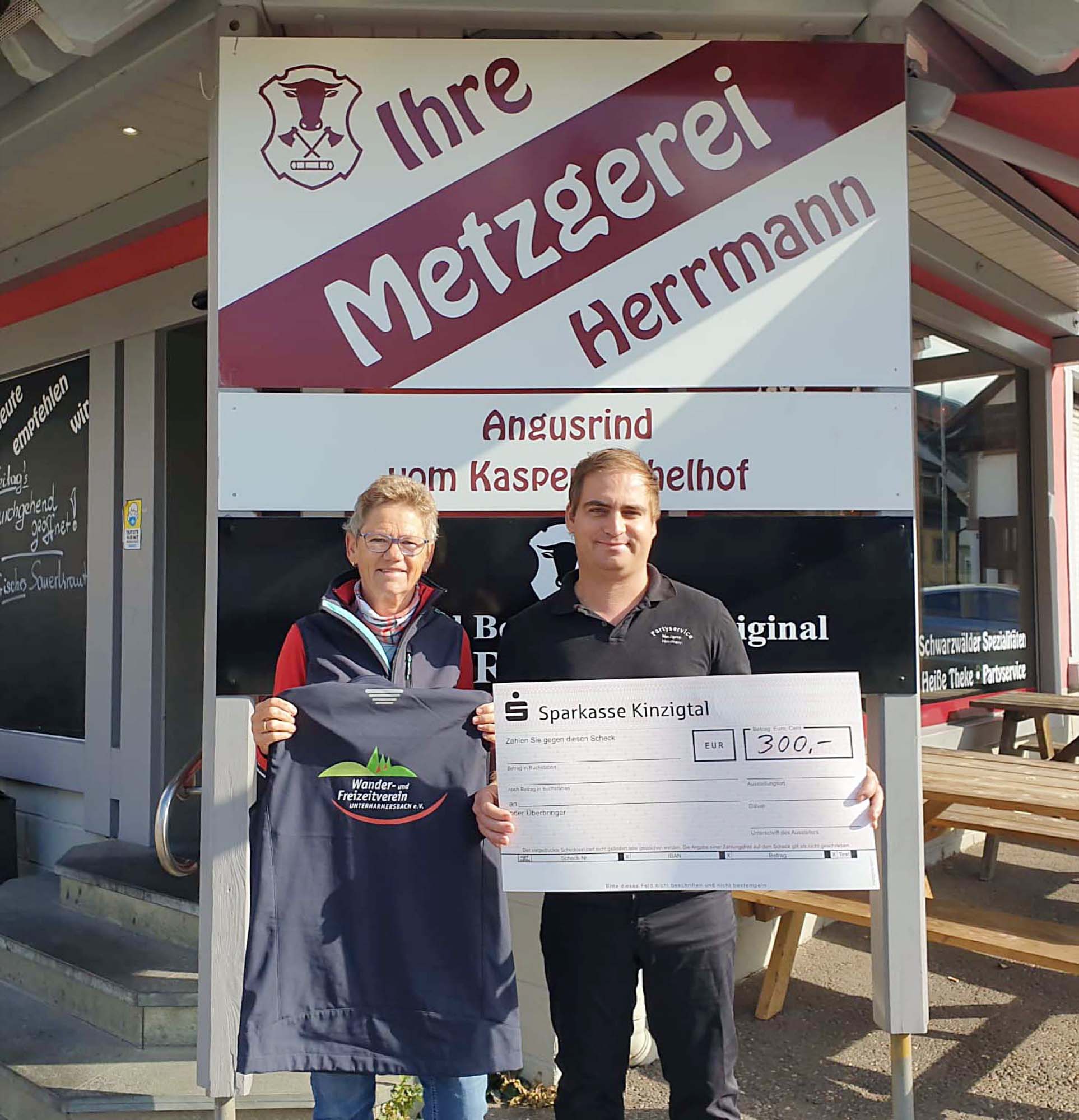 Die Metzgerei Herrmann hat dem Verein dafür 300 Euro gespendet. Die Vorsitzende Iris Bruder nahm gerne den Spendenscheck aus den Händen vom Metzgermeister Daniel Hermann entgegen und bedankte sich recht herzlich für die großzügige Unterstützung.