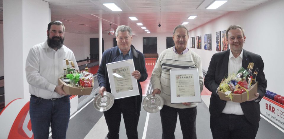 Die Ehrungen nahmen in diesem Jahr wieder etwas mehr Zeit in Anspruch. So wurde Axel Schondelmaier für 20 Jahre Mitgliedschaft mit der bronzenen Ehrennadel geehrt. Für vierzig Jahre Mitgliedschaft erhielten Erhard Eble, Franz Schultheiß, Gerhard Schöner und Franz Josef Wacker die goldene Ehrennadel. Auf Antrag der Vorstandschaft verlas Markus Wacker dann zwei Anträge für Ehrenmitgliedschaften. Richard Schöner trat 1977 dem SKC Unterharmersbach bei. Sein Engagement war von Beginn an sehr groß. Schnell stand er als Vorstandsmitglied über etliche Jahre mit in der Verantwortung und lenkte als 1. Vorsitzender oder 1. Sportwart die Geschicke des Vereins. Er war es auch, der beim Hotelbau des »Grünen Hof« sich im Jahr 1979 dafür stark machte, dass die Wirtsfamilie Wacker anstelle von zwei Bahnen doch gleich vier Bahnen bauen solle. Eine Entscheidung, die rückblickend elementar für den Erfolg des SKC Unterharmersbachs war. Auch die Einführung der SKC-Schnittliste, zur damaligen Zeit einmalig, war Richard Schöners Verdienst.