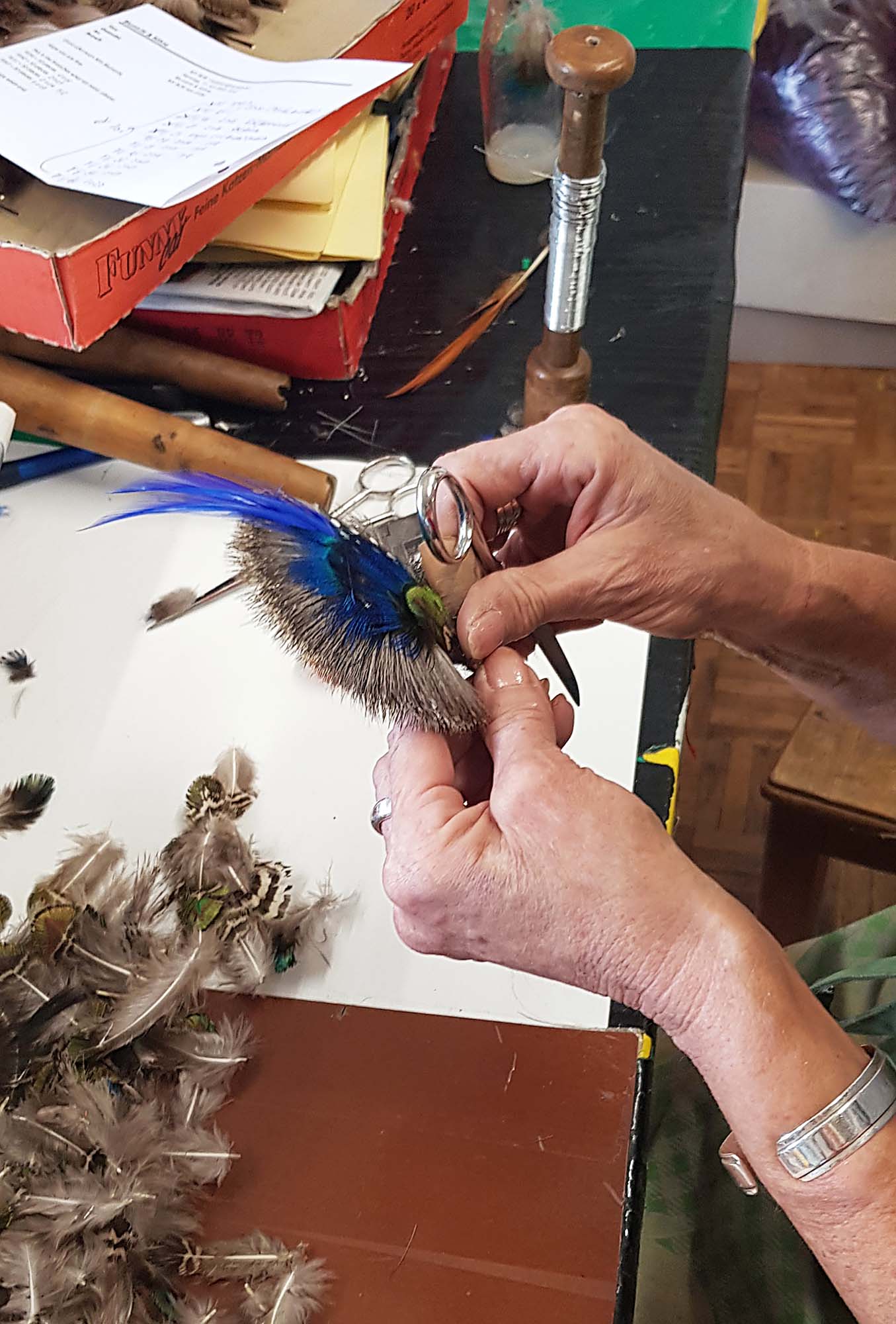 Wie zu Zeiten des sudetendeutschen Großvaters entstehen die filigran wirkenden Schönheiten in reiner Handarbeit und mit viel Fingerfertigkeit, denn auch die Fertigungstechniken sind dieselben geblieben. Zwar habe das Traditionelle nach wie vor Bestand, betont Regina Erb, dennoch müsse man sich dem Markt anpassen, mit modernen bunten Designs. Daher wird das Rehfell heutzutage auf Kundenwunsch mit eingefärbten Federn kombiniert, in strahlendem Türkisblau beispielsweise, oder gar in Neonfarben.