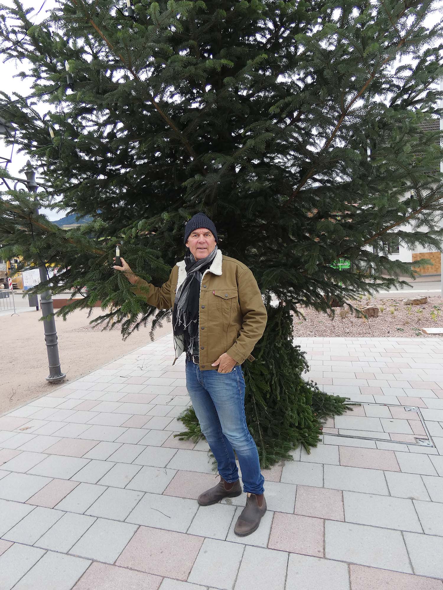 »Vor der diesjährigen Neugestaltung des Rathausplatzes stand der Weihnachtsbaum immer an der rechten Ecke vor dem Rathaus«, erzählt Ortsvorsteher Ludwig Schütze, »dort war er eigentlich immer ein bisschen im Weg und durfte schon deshalb nicht zu ausladend sein«.
