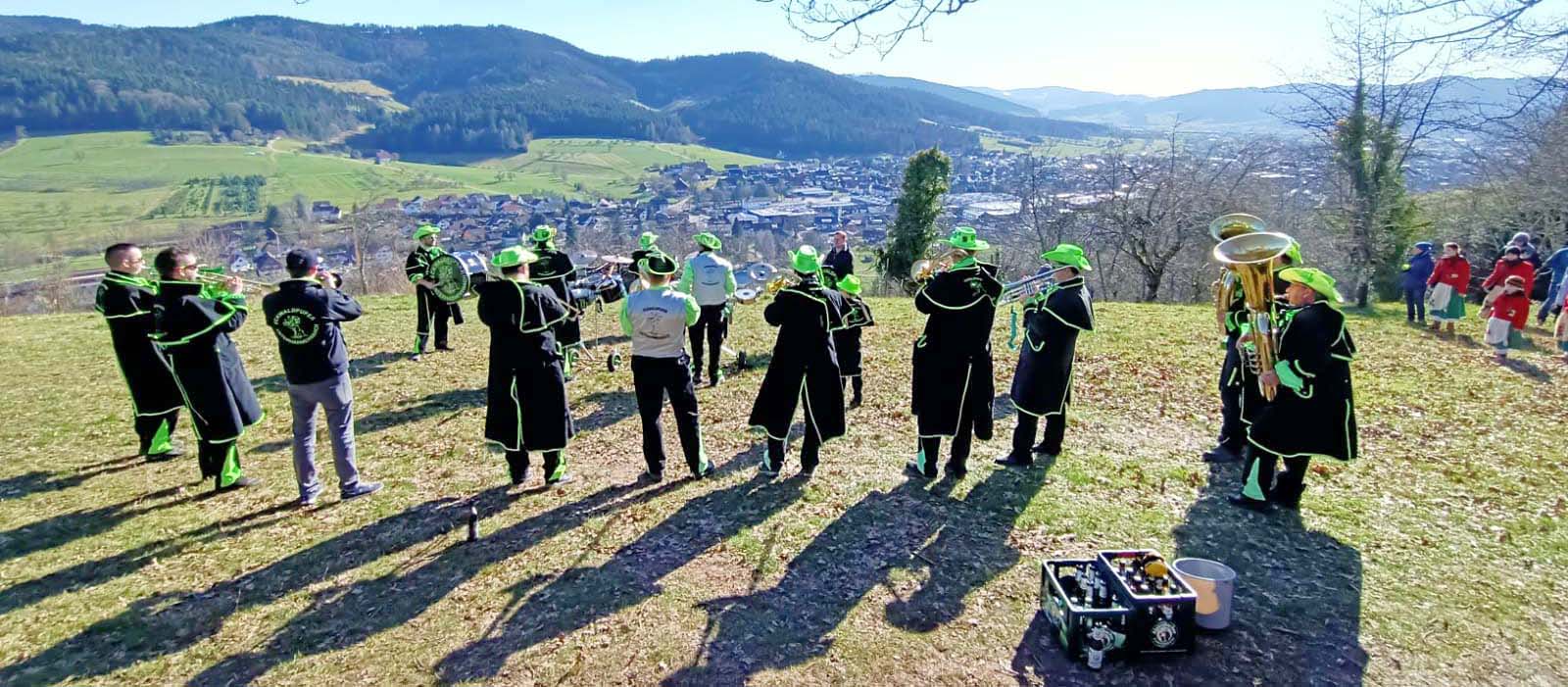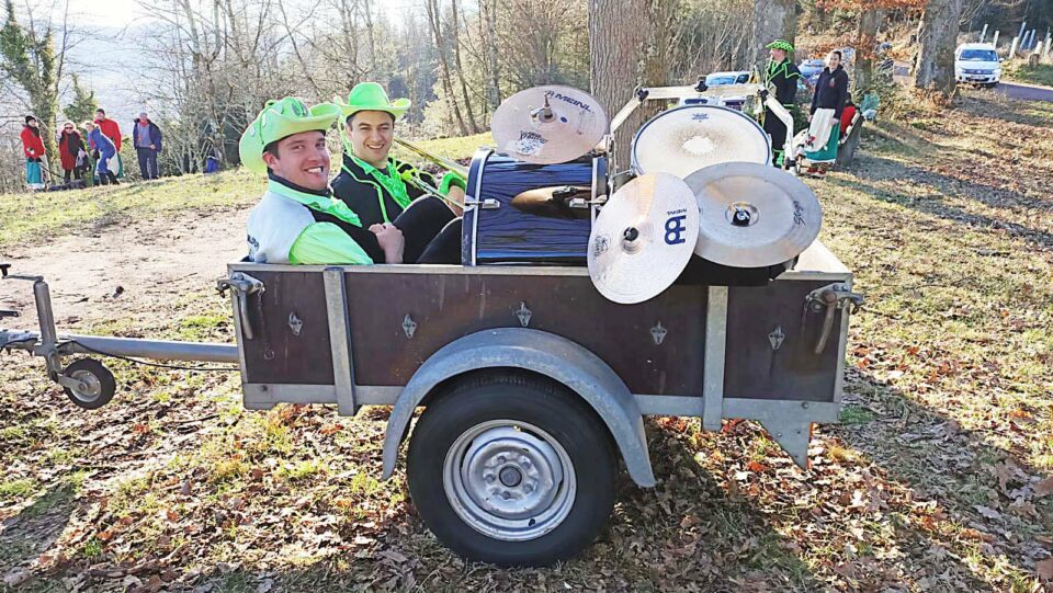 Ein ruhiger Spaziergang in lauschiger Natur – wer derartigen Müßiggang suchte, wurde bitter enttäuscht. Die Narren sind überall. Corona treibt sie ins Freie – und was läge für die Eckwaldpuper aus Unterharmersbach näher als den Eckwaldpavillon in Beschlag zu nehmen. Bei traumhaftem Wetter schickten sie Guggenmusik ins Tal und pflegten – ganz nebenbei – die Kameradschaft.