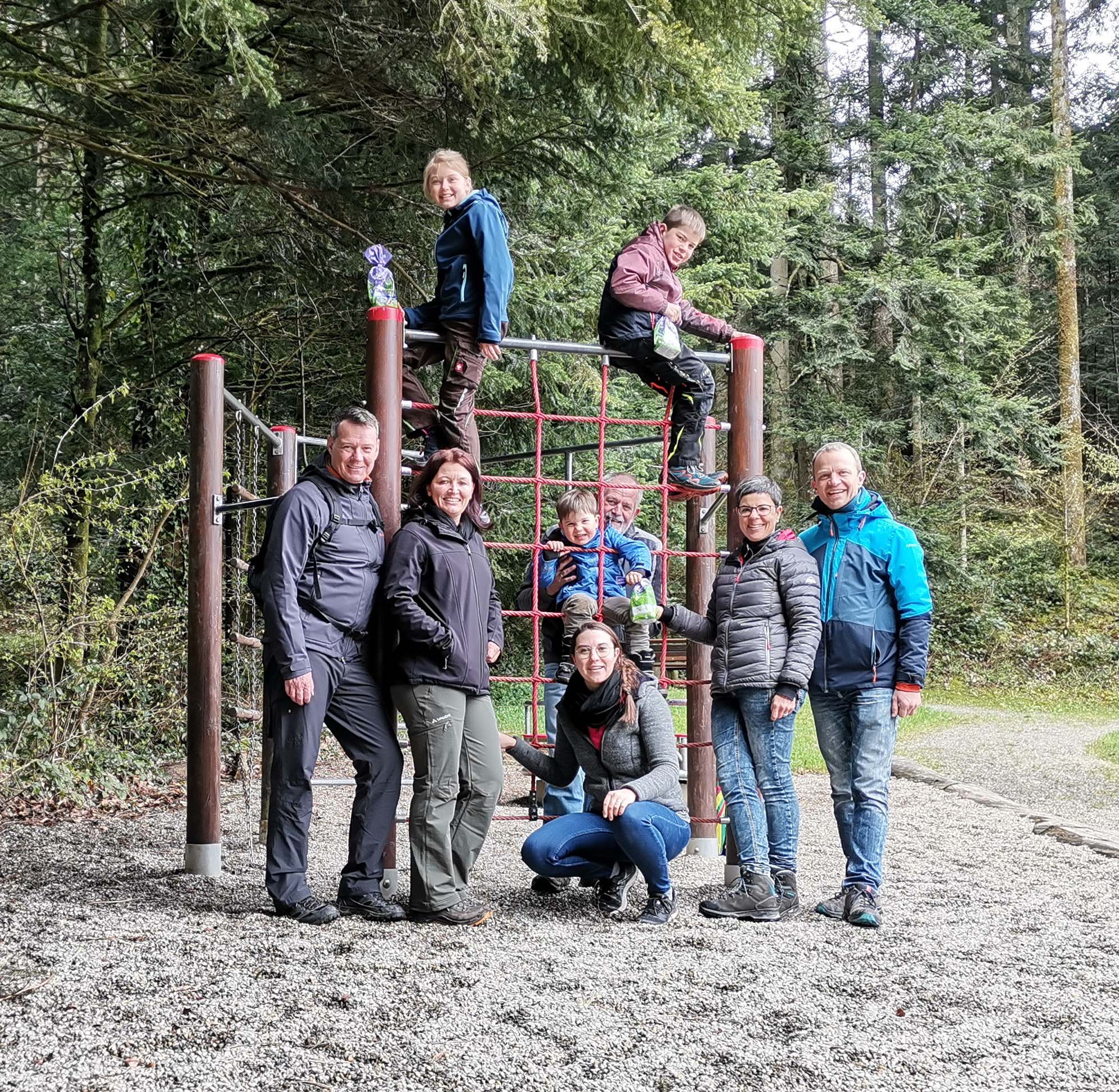 Man traf sich auf ein Uhr am Dorfgemeinschaftshaus in Unterentersbach. Vom Treffpunkt ging es über die Nußbaumstraße Richtung Golfplatz und über den alten Wald, runter über die Europabrücke, durch den Wald auf die Gehrmatt. Nach einer kleinen Runde um den Teich, wurde fleißig auf die Suche nach den Überraschungen des Osterhasen gegangen. Nach einer Vesperpause und ausreichend Zeit für die Kinder zum Spielen auf dem Spielplatz, ging es über die Dorfmitte und einen kleinen Umweg über einen weiteren Spielplatz, zurück zum Dorfgemeinschaftshaus.