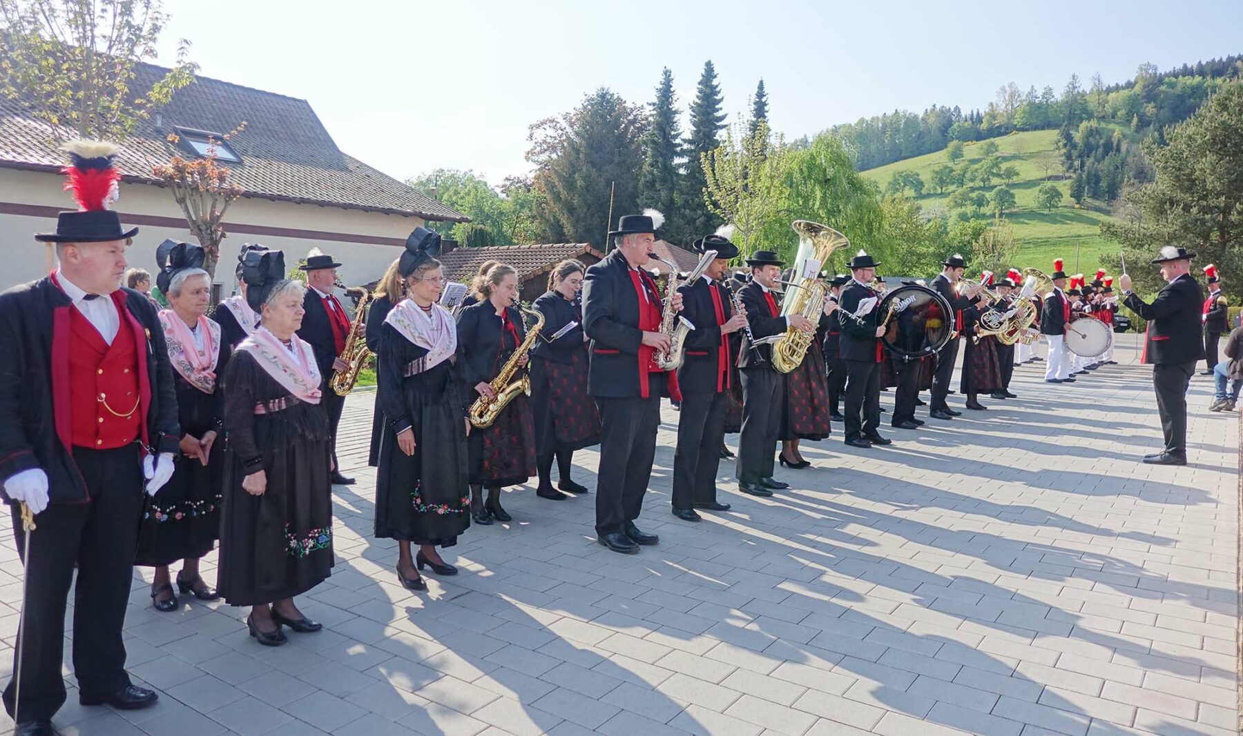 Foto: Hans-Peter WagnerSchon der Aufmarsch war prächtig: Die Bürgerwehr mit Spielmannszug und Gewehrträgern sowie die große Zahl der Musiker des Musikvereins Unterharmersbach zauberten zwischen den Reden mit ihren viel beklatschten Melodien ein Galafest auf den Platz, wie man es selten im Hambe erlebt hat.