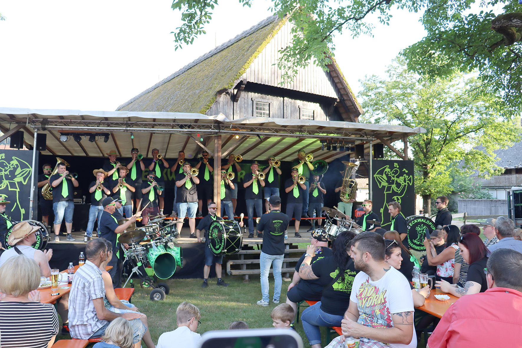 Einen beeindruckenden Höhepunkt des Jubiläums bildeten danach die »Mändigsmusik« aus Unterentersbach. Die musikalisch hervorragend aufgestellte Gruppe waren schon einige Male zu Gast bei den Eckwaldpupern. Als Gastgeschenk überreichten die Mändigsmusiker den Eckwaldpupern eine 44 Dezimeter (4,4 Meter) lange Tanne, bestückt mit 44 Tannenzapfen (Tannenzäpfle). Die Festwiese am Fürstenberger Hof bebte förmlich bei dem musikalischen Feuerwerk mit Titeln wie »Partyplanet« von den Festbääänklern und vielen internationalen Hits.