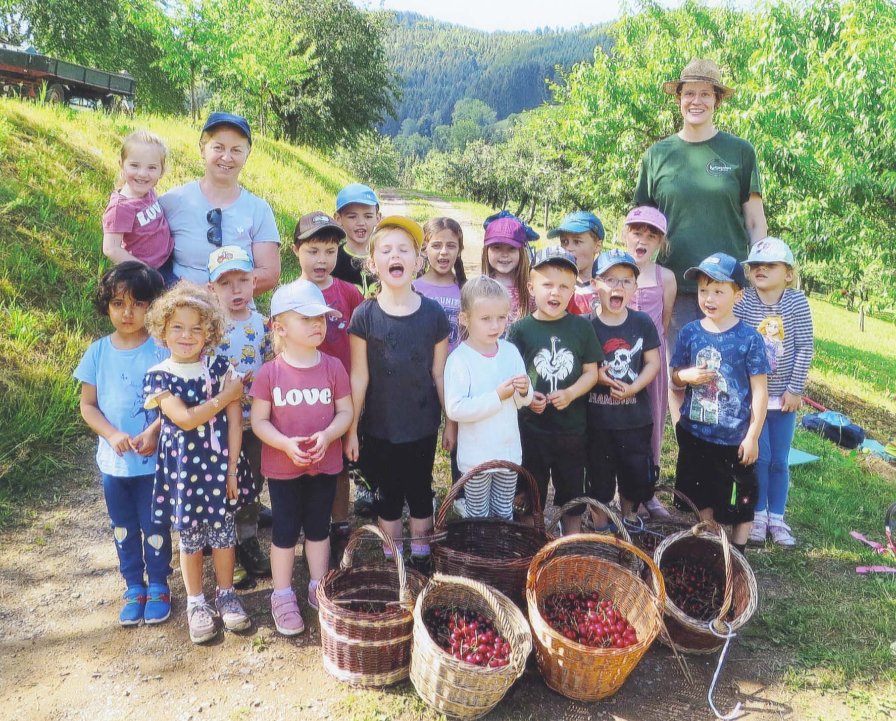 Vor einigen Tagen machte sich die Sternengruppe aus dem Kindergarten »Kleine Wolke« mit ihren Erzieherinnen auf den Weg zur Kirschbaum-Plantage der Familie Isenmann in Hippersbach. Sie folgten einer Einladung zum Kirschenpflücken.