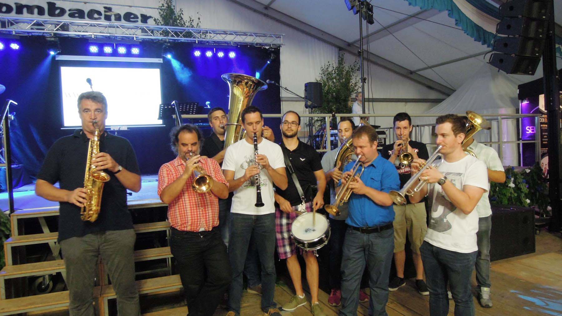 Danach geht es rund mit toller Blasmusik »beim Hombacher Hock mit anschließendem Feschd«. Die Vergnügungsmeile erstreckt sich im Gelände rund um den Sportplatz und an keinem Punkt des Festplatzes muss man mehr als fünf Meter gehen, um ein Bier zu ergattern. Am Sonntagmorgen geht es dann weiter auf dem Festgelände.